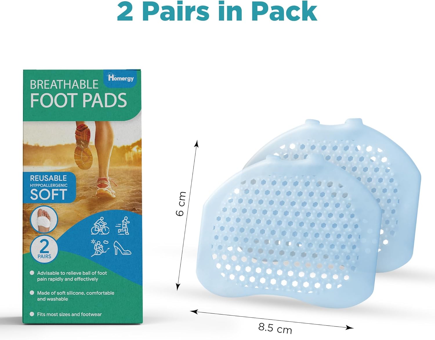 Homergy Metatarsal Foot Pads - Soft Gel Ball of Foot Cushions for Pain Relief, Ultra-Thin Sleeve Design, Stays in Place, Breathable & Reusable - Fits Heels, Flats, Sneakers (4 Pads / 2 Pairs)