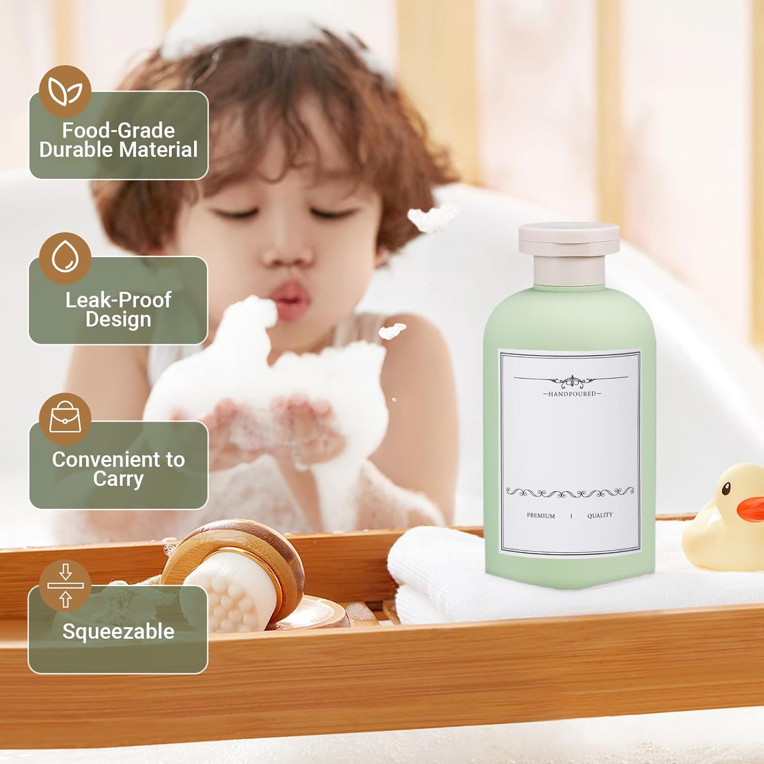 10oz Travel Shampoo Bottle, Empty Plastic Squeeze Bottles with Flip Cap, Lotion Container for Toiletries Travel Size Shampoo and Conditioner (3 pack green)
