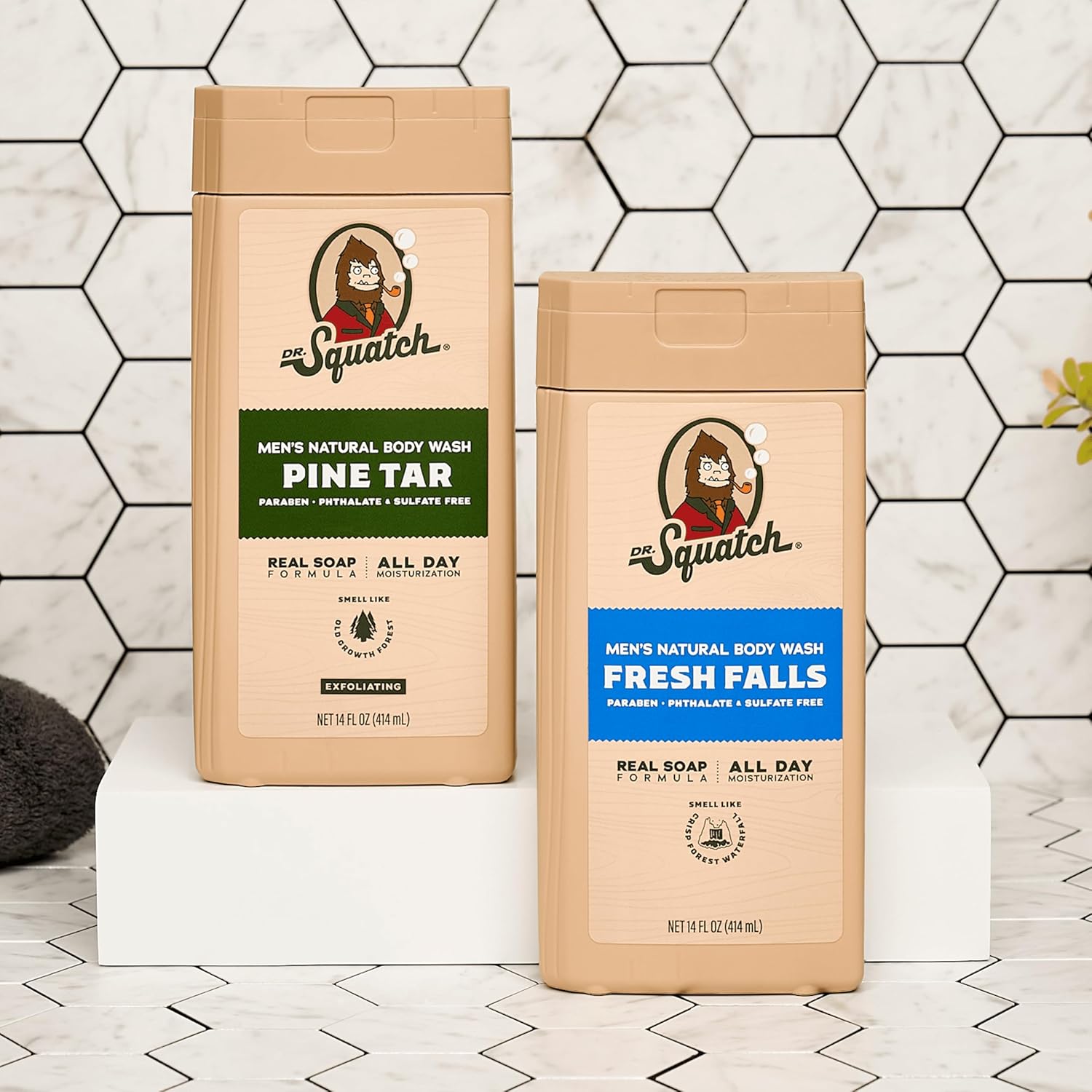 Dr. Squatch NEW Body Wash for Men with Nourishing, Natural Ingredients | No Paraben, Phthalate, Sulfate | All Day Moisture | Long Lasting Scent | Pine Tar & Fresh Falls (14 oz, 2-Pack)