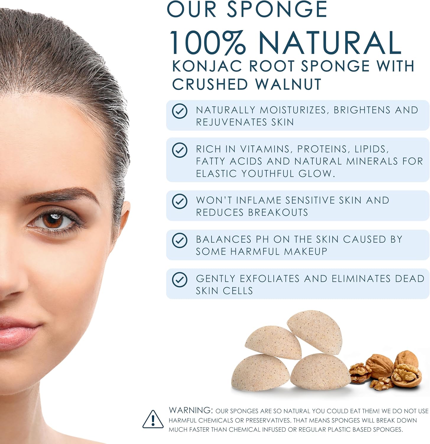 - SET OF 4: 100% Natural Konjac Face Sponges. Eco-friendly, plastic-free packaging! WARNING: If you are new to Konjac face sponges, they last 1-2 months and then you will need to replace them. This is normal and to be expected for any Konjac sponge :)