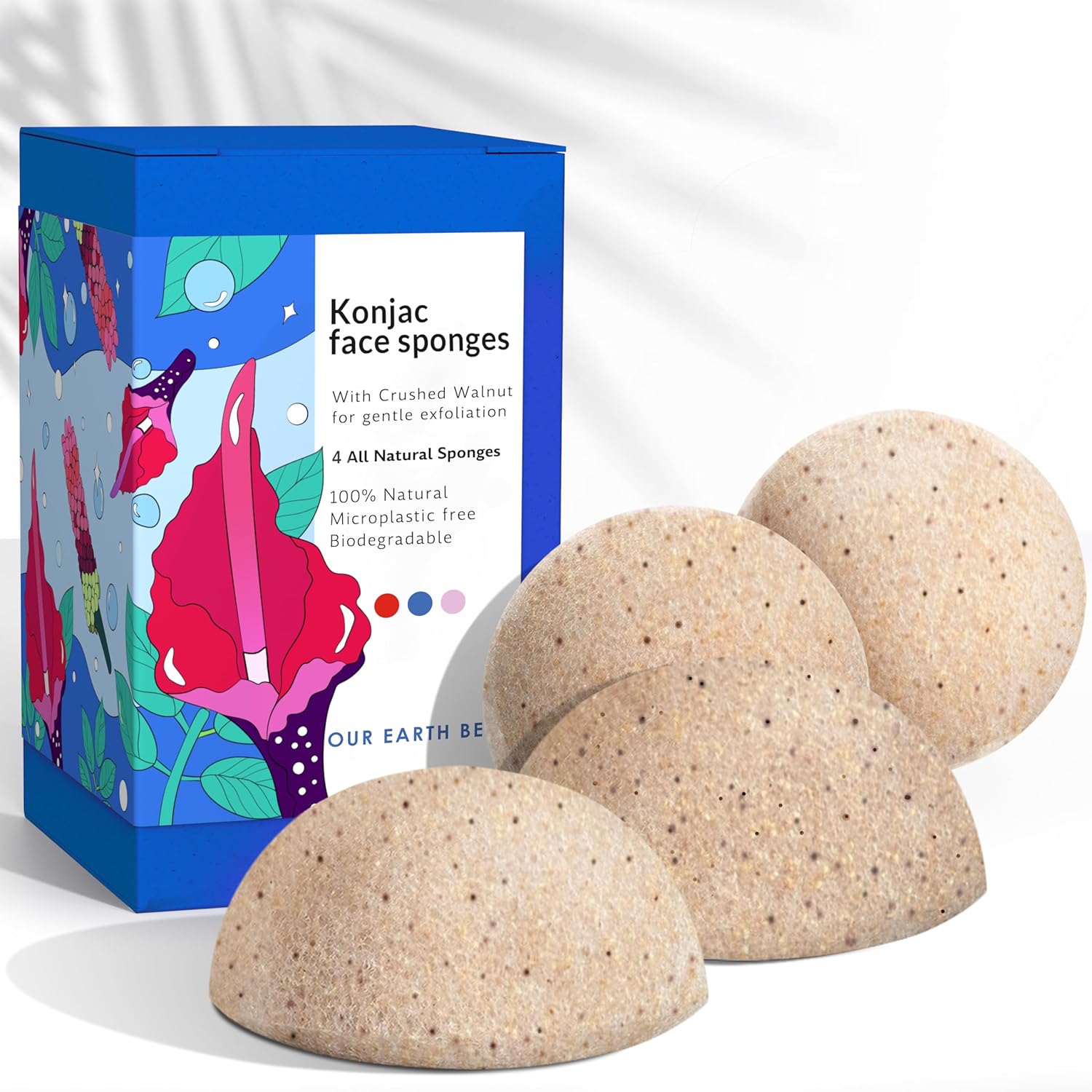 Konjac Exfoliating Face Sponge for Cleansing & Facials (4 Pack) | Microplastic Free 100% Natural | Non-Toxic | Biodegradable | Eco-Friendly | Plastic Free Packaging