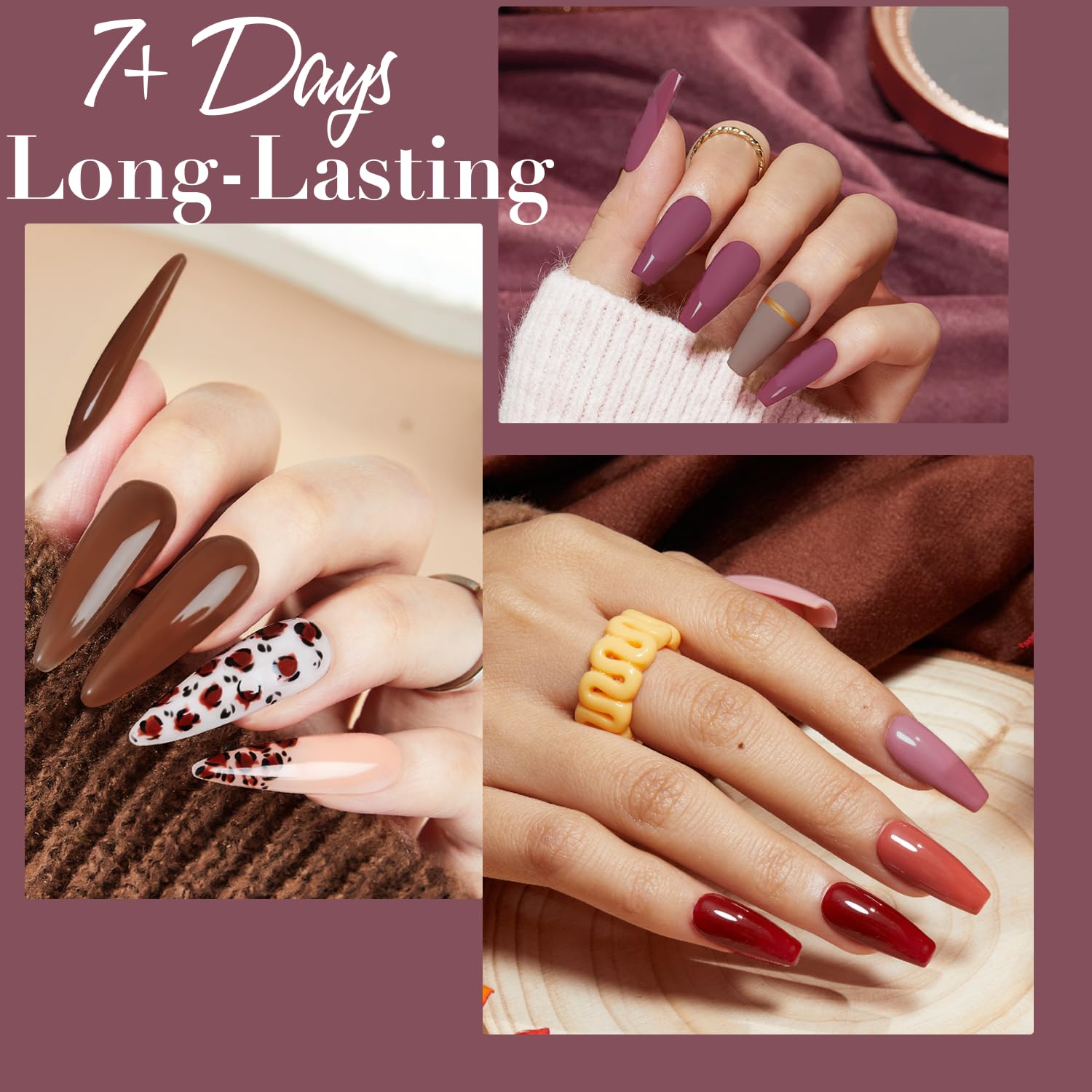 - High Gloss Shine & Easy to Use: Our Top Coat finish prevents scratches, chips, and smudges while increasing color saturation by 20%, making your nails shine more. Our nail polish set extracts high-purity pigments for strong coloring; Even for beginners, you can get a professional-looking manicure at home, and getting beautiful is so easy