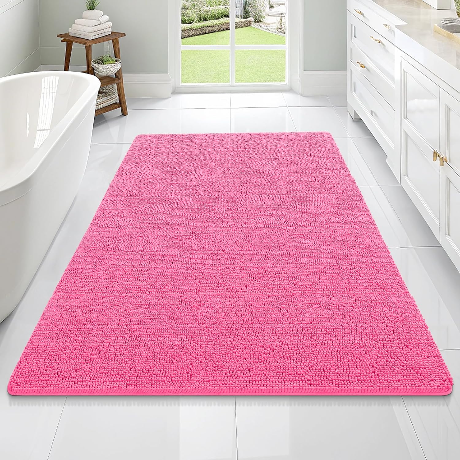 OLANLY Bathroom Rugs 70x46, Extra Soft Absorbent Chenille Bath Rugs, Rubber Backing Quick Dry, Machine Washable Bath Mats for Bathroom Floor, Tub and Shower, Home Decor Accessories, Hot Pink