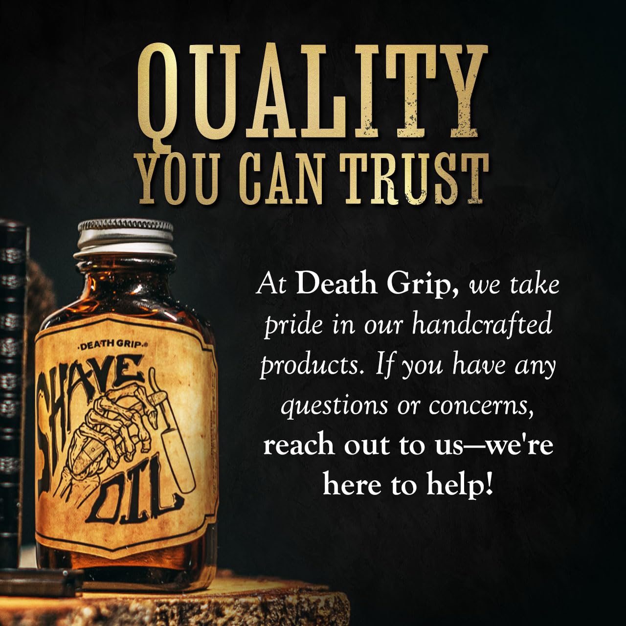 - Death Grip Directions - Pre-Shave To Soften The Bristles, Shave With The Shave Oil For A Natural Glide & After Shave To Soothe & Soften Skin & Facial Hair