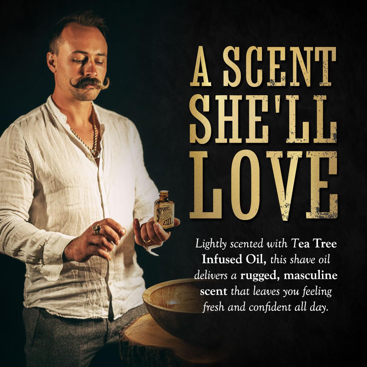 - Death Grip Scented Shave Oil - Lightly Scented With Tea Tree Infused Oil For A Rugged Manly Scent Your Woman Will Appreciate. NEW Product Label by Death Grip.