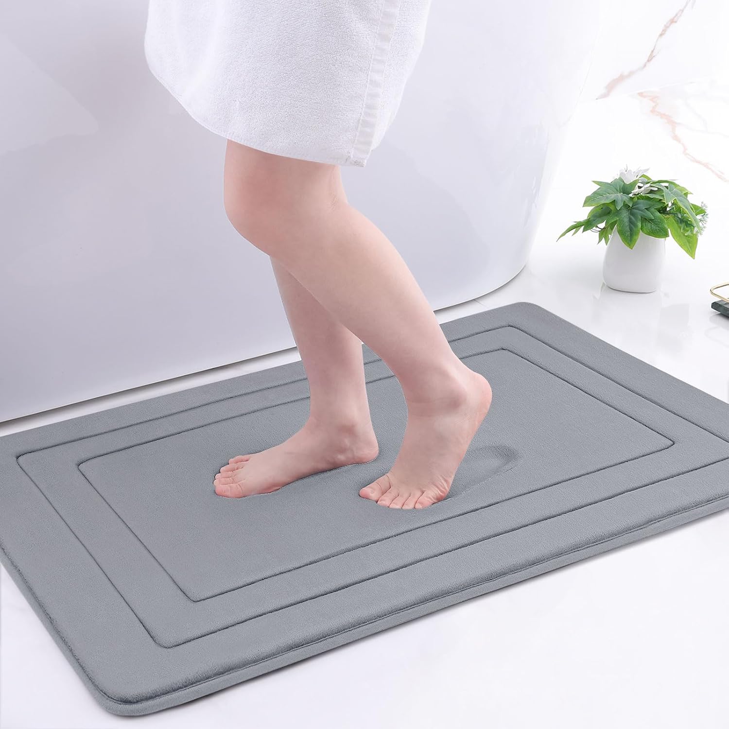 - Water Absorption : Our Memory Foam Bathroom Rug Mat features a soft flannel layer that has notable water-absorbing capability, ensuring a dry surface on the bathroom mat while keeping feet dry. Enjoy the convenience of a quick-drying and reliable bath mat