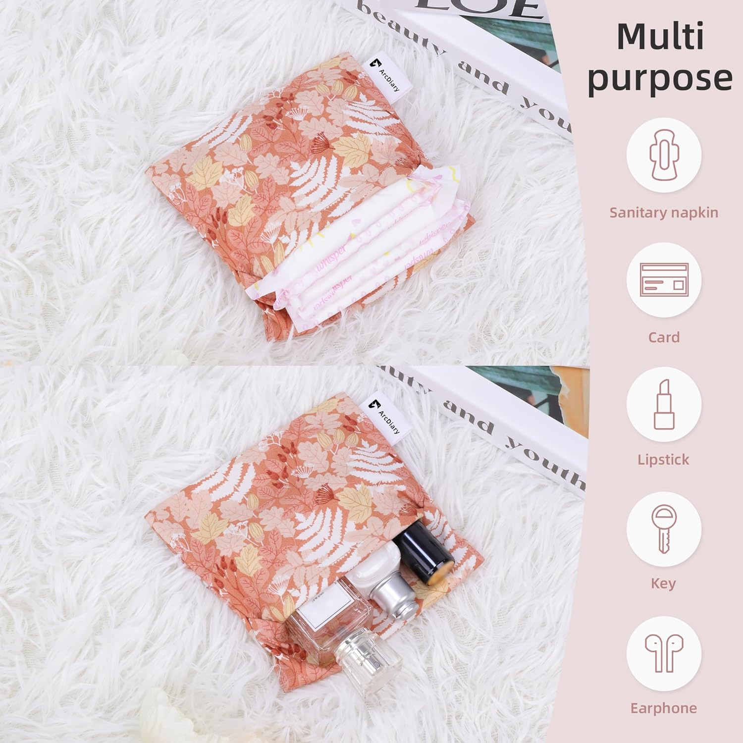 - 【Multifunctional】This menstrual pad pouch is perfect for storing sanitary napkins, tampons. It is also a multi-functional wallet for storing your personal belongings or some miscellaneous items: jewelry, cosmetics, credit cards, and so on. These menstrual pad pouches are suitable for daily use in office, school, dating, traveling, hotel, indoor or outdoor and more.