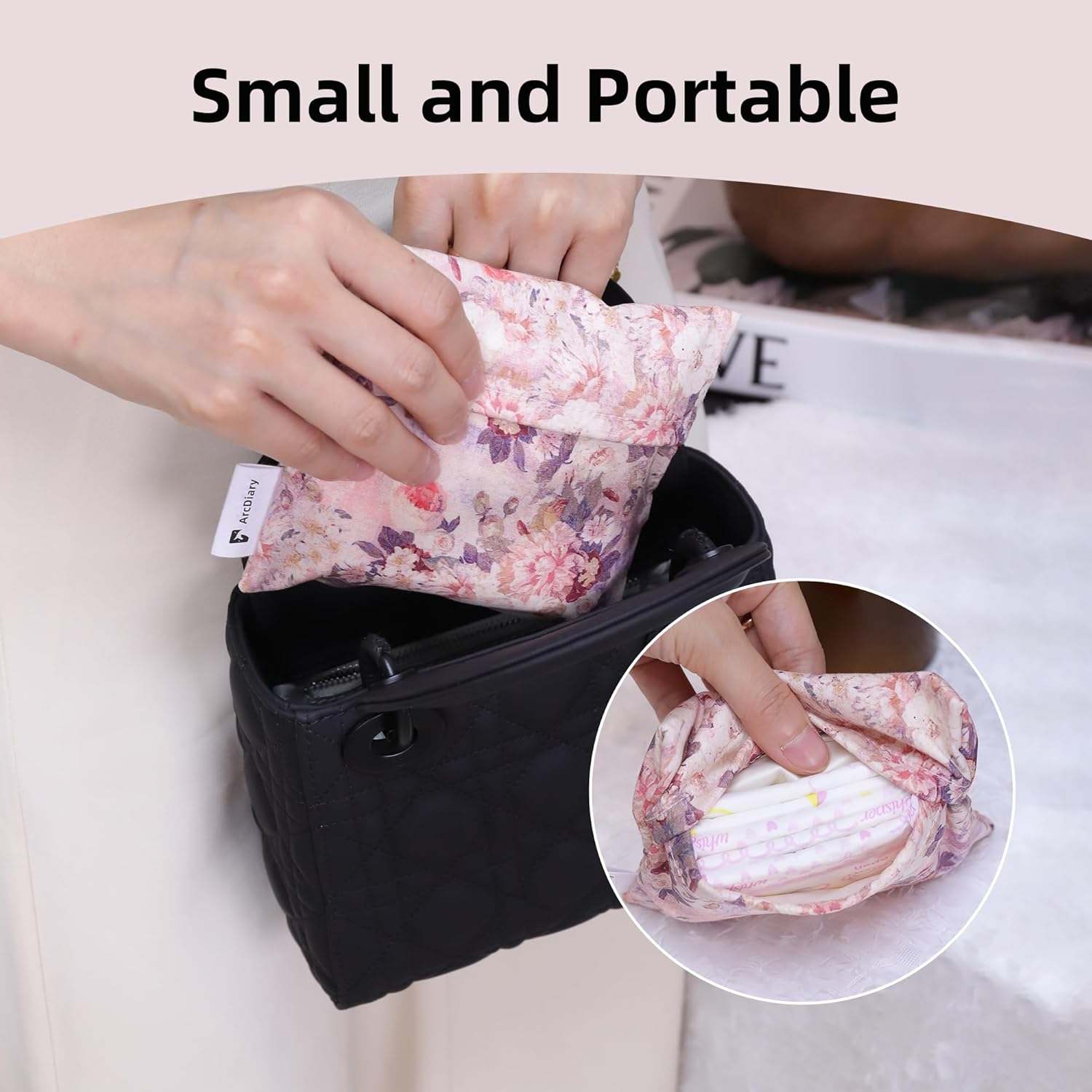 - 【Multifunctional】This menstrual pad pouch is perfect for storing sanitary napkins, tampons. It is also a multi-functional wallet for storing your personal belongings or some miscellaneous items: jewelry, cosmetics, credit cards, and so on. These menstrual pad pouches are suitable for daily use in office, school, dating, traveling, hotel, indoor or outdoor and more.