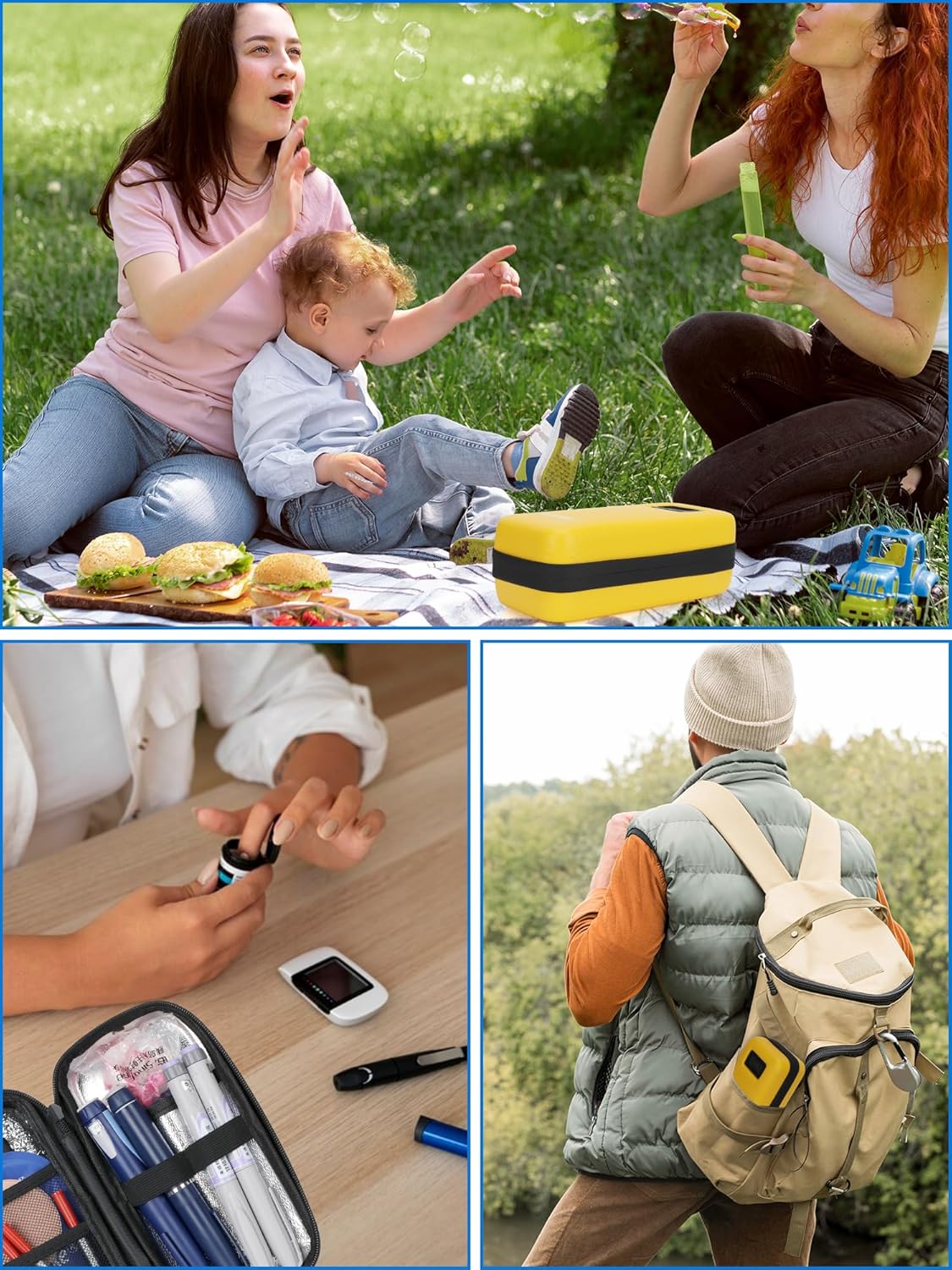Insulin Cooler Travel Case with 2 TSA Approved Gel Ice Pack for Insulin Syringe and Diabetic Supplies, Temperature Display Diabetic Travel Case by LengKe (Yellow)