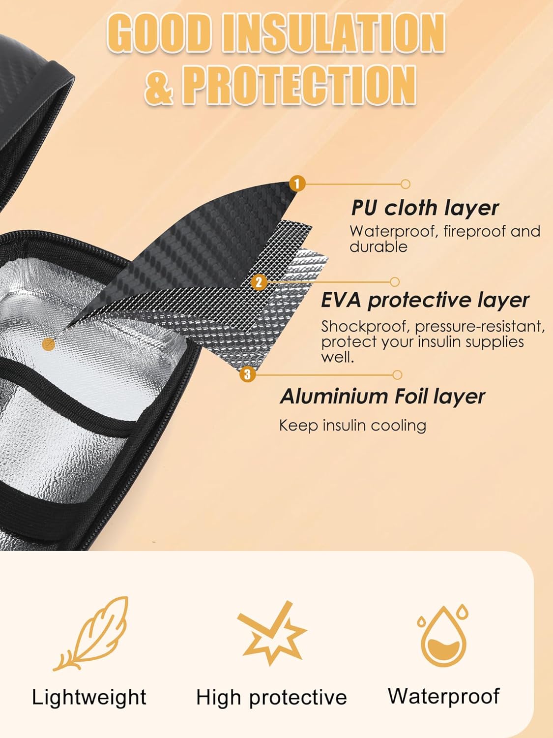 - Medical Cooler Travel Bag for All Your Diabetic Supplies - This insulin travel case tsa approved is designed with a spacious interior, 8.2 x 4.2 x 2.9 inches, making it perfect for carrying insulin pens, insulin syringes, diabetic needles, glucose meters, and other essentials. Whether for work, camping, or short trips, this medication cooler for travel keeps your diabetic supplies safe and organized.