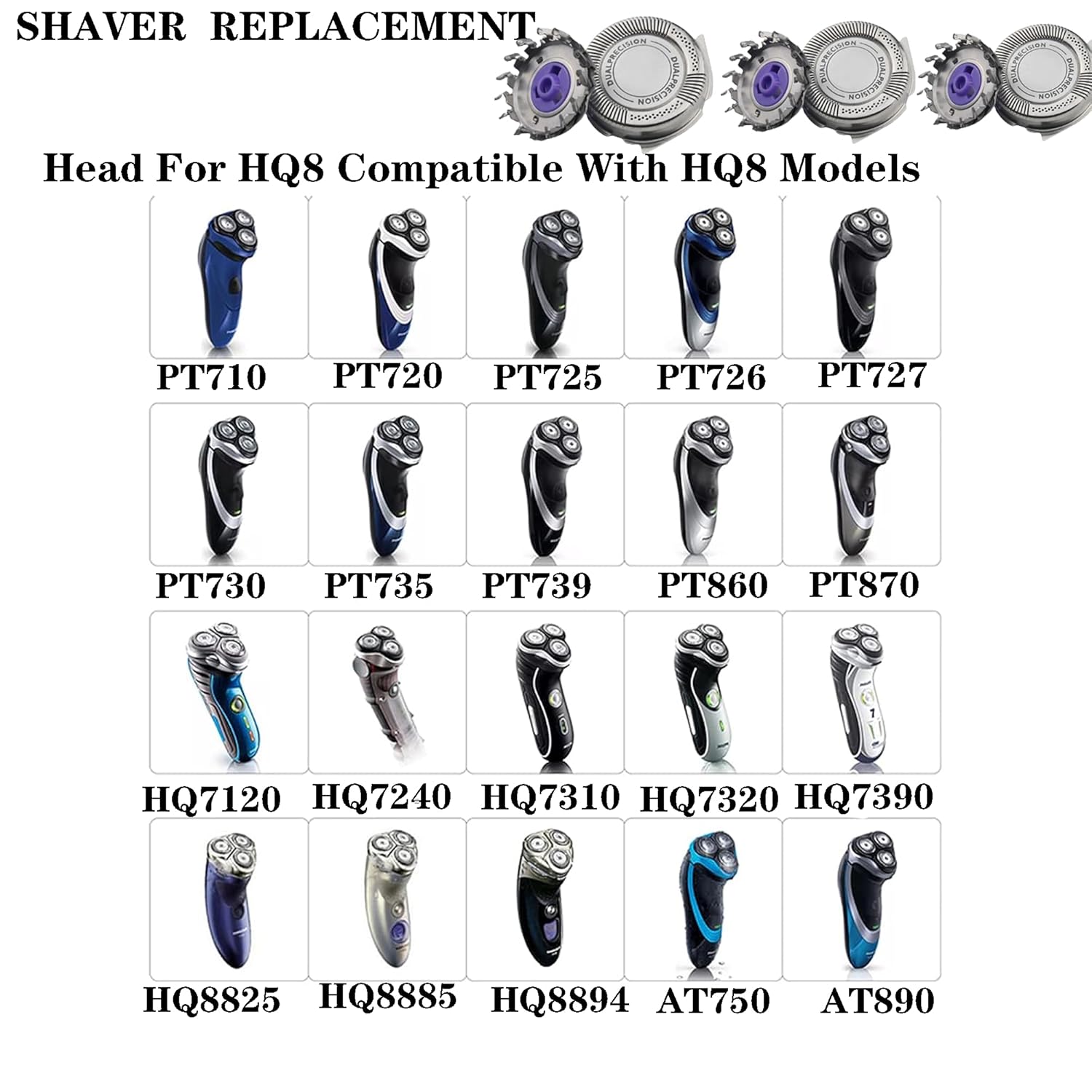 - Highly Compatible:Fit for Philipss Norelcos HQ8 Shavers Models: AT750 AT751 AT810 AT811 AT830 AT880 AT890 AT891; PT710 PT715 PT720 PT725 PT730 PT735 PT860 PT870 PT875 PT880 PT810 PT815; HQ71XX series, HQ73XX series, HQ88XX series and more