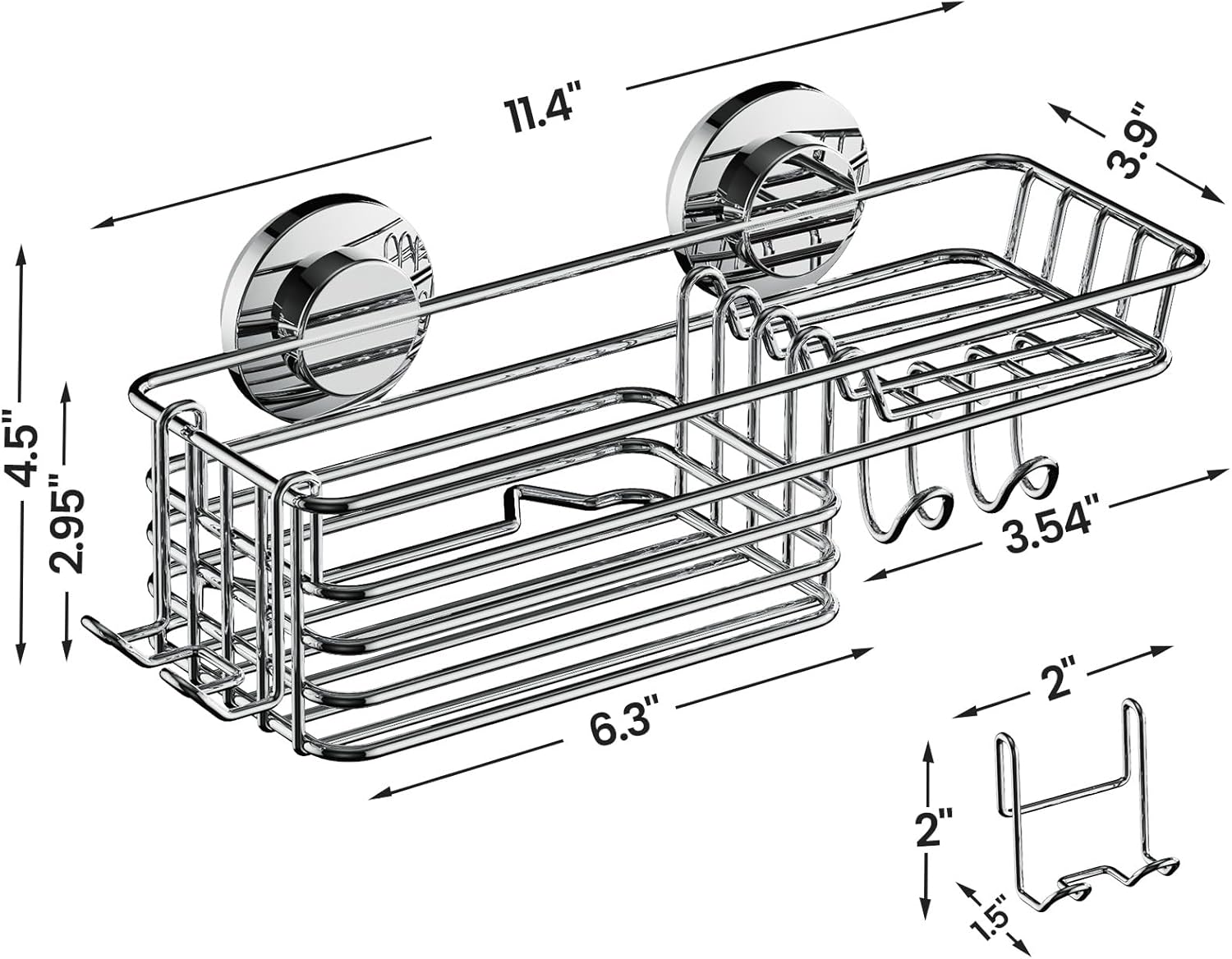 - Humanized Hooks and Soap Holder: Large capacity for shampoo, shower gel, cosmetics, hair conditioner, hand washing liquid and soap. Also shower basket includes 2 large size hooks, you can hand your razors, towels, brushes on it. The shower holder organizer works great in the shower/ bathroom/ bathtub/ kitchen/RV and more, meet all your storage requirement.