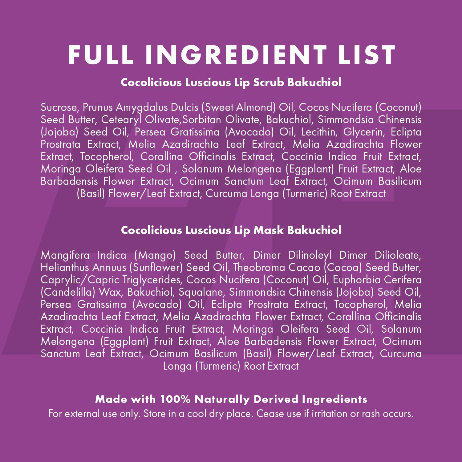 100% Natural Lip Scrub, Vegan Conditioning Coconut Lip Exfoliator - Gentle Exfoliant, Sugar Lip Polish and Lip Exfoliator Scrubber for Chapped and Dry Lips (Bakuchiol 3pc Set)
