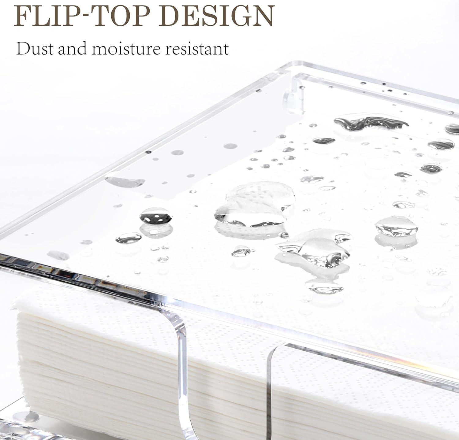 DINGHUO Acrylic Napkin Holder, 7"x 7"x 2.4" Flat Luncheon Napkin Dispenser with Lid, Clear Flip-top Waterproof Paper Napkin Container Organizer for Table, Kitchen, Indoor & Outdoor, Bathroom Vanity