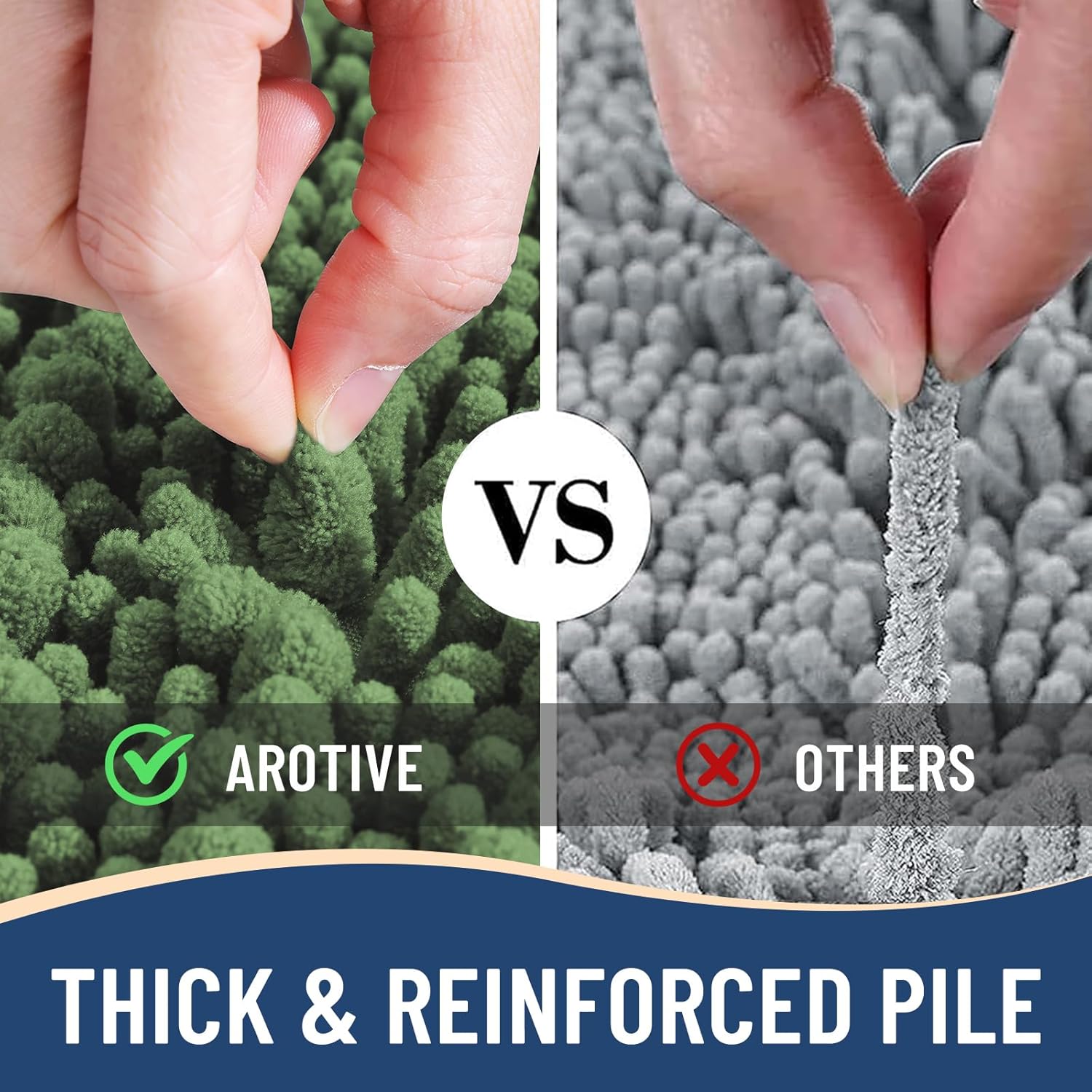 Arotive Luxury Chenille Bathroom Rug Mat, Extra Soft Thick Absorbent Shaggy Bath Rugs, Non-Slip Machine Wash Dry, Plush Bath Mats for Bathroom, Shower and Tub, 24x16, Olive Green