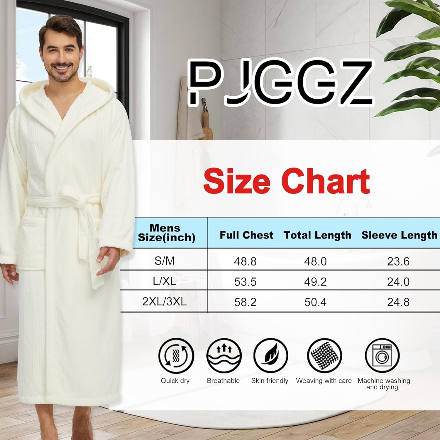 Men's Bathrobes with Hood, Soft Long Towel Robe for Men - Super Absorbent Quick Dry yet Warm