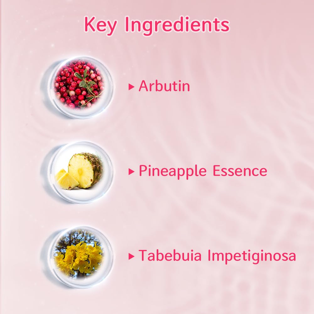 - 【Glow-boosting】Arbutin inhibits tyrosinase activity for a brighter complexion, while pineapple essence progressively illuminates and hydrates to leave you a soft, touchable skin that is even and glowing