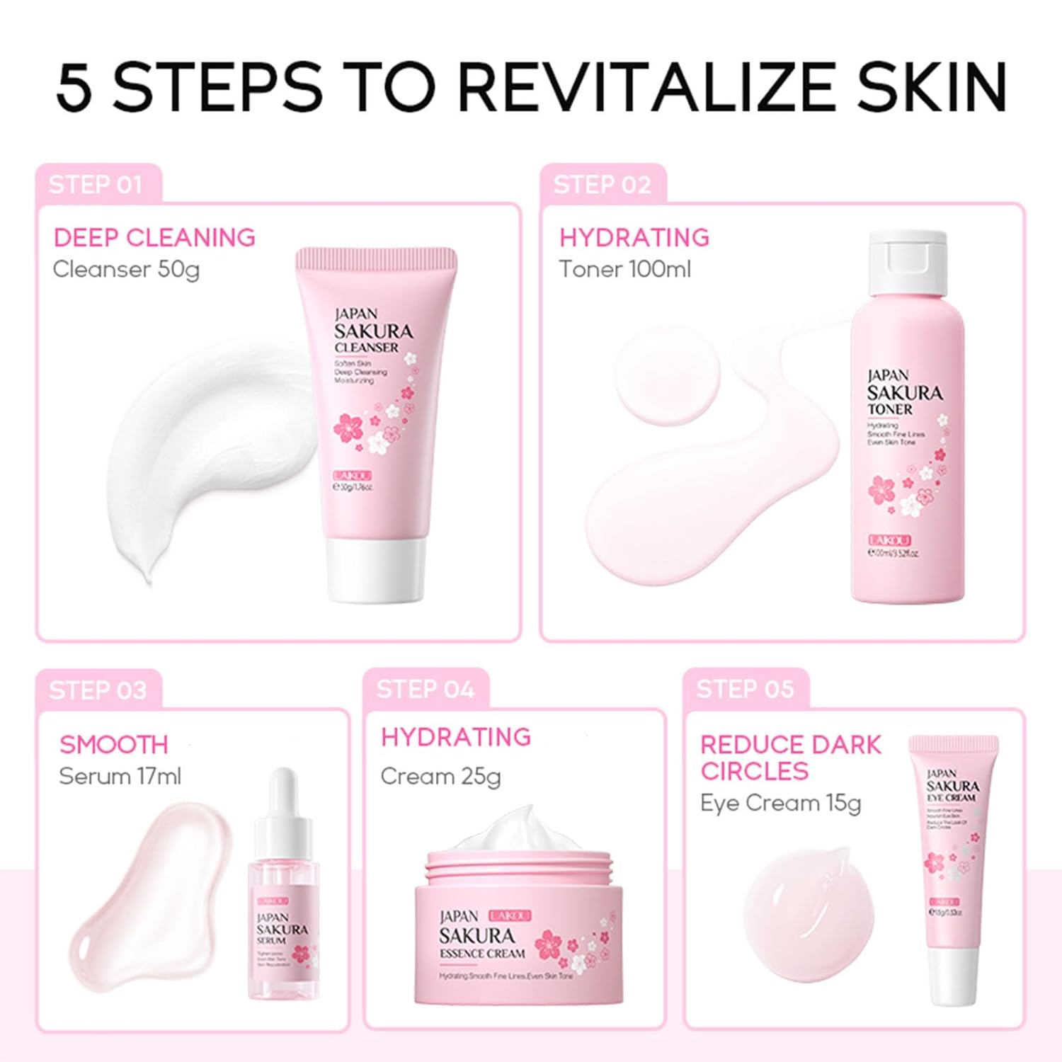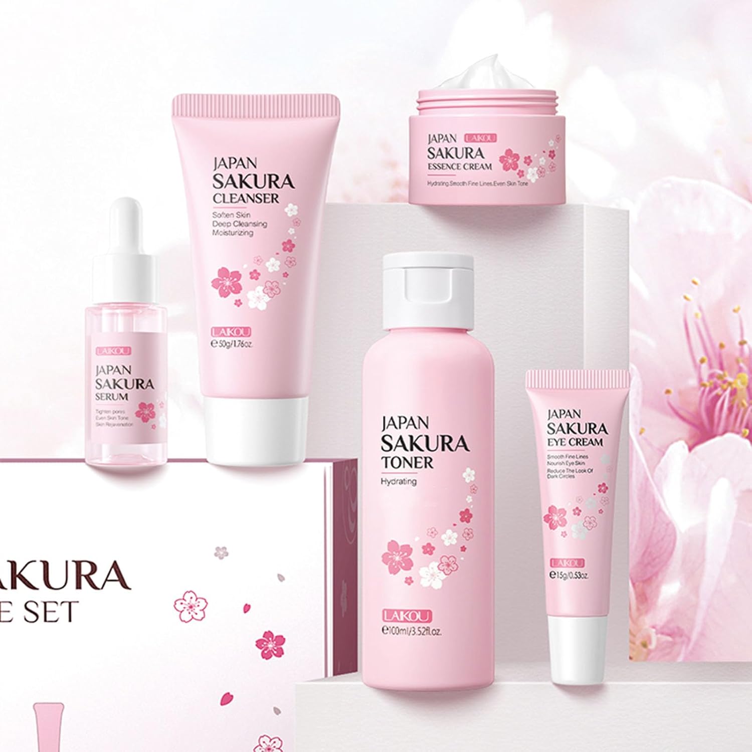 - 【 Moisturizing and Easy to Absorb 】 Skincare kits contain cherry blossom extract and a variety of plant extracts, which are gentle, moisturizing and vegan. Perfect for travel or daily use