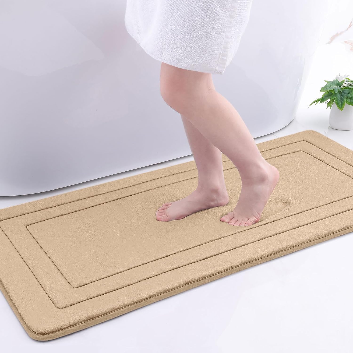 Arotive Memory Foam Bathroom Rug Mat 47x20, Ultra Soft and Absorbent Bath Mat, Machine Wash Dry, Comfortable Bath Rug Carpet for Bathroom Floor, Tub and Shower, Beige