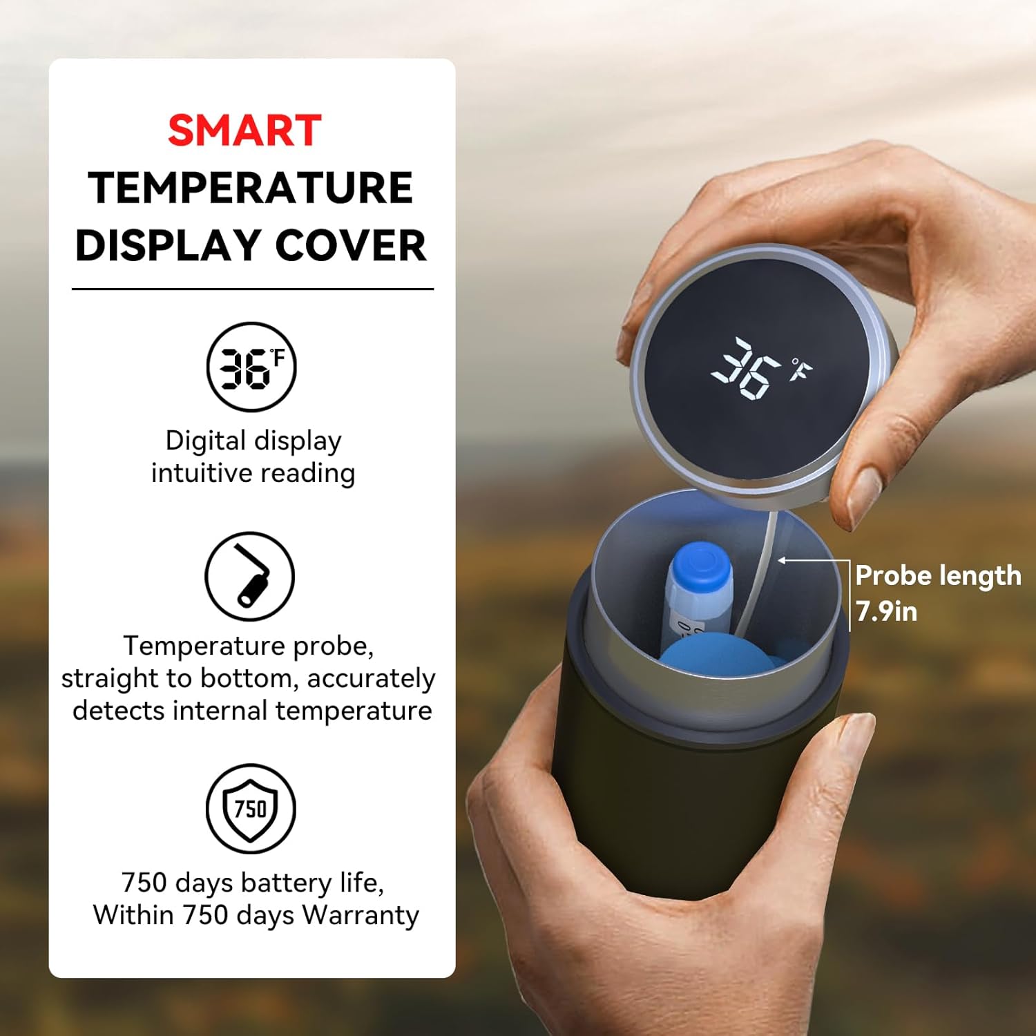 - What are the advantages of a digital display thermometer : The 20 cm (7.87 in) temperature sensor accurately detects the bottom temperature of the cooler. The touch screen lets you easily monitor if the internal temperature is safe, ensuring a worry-free trip.