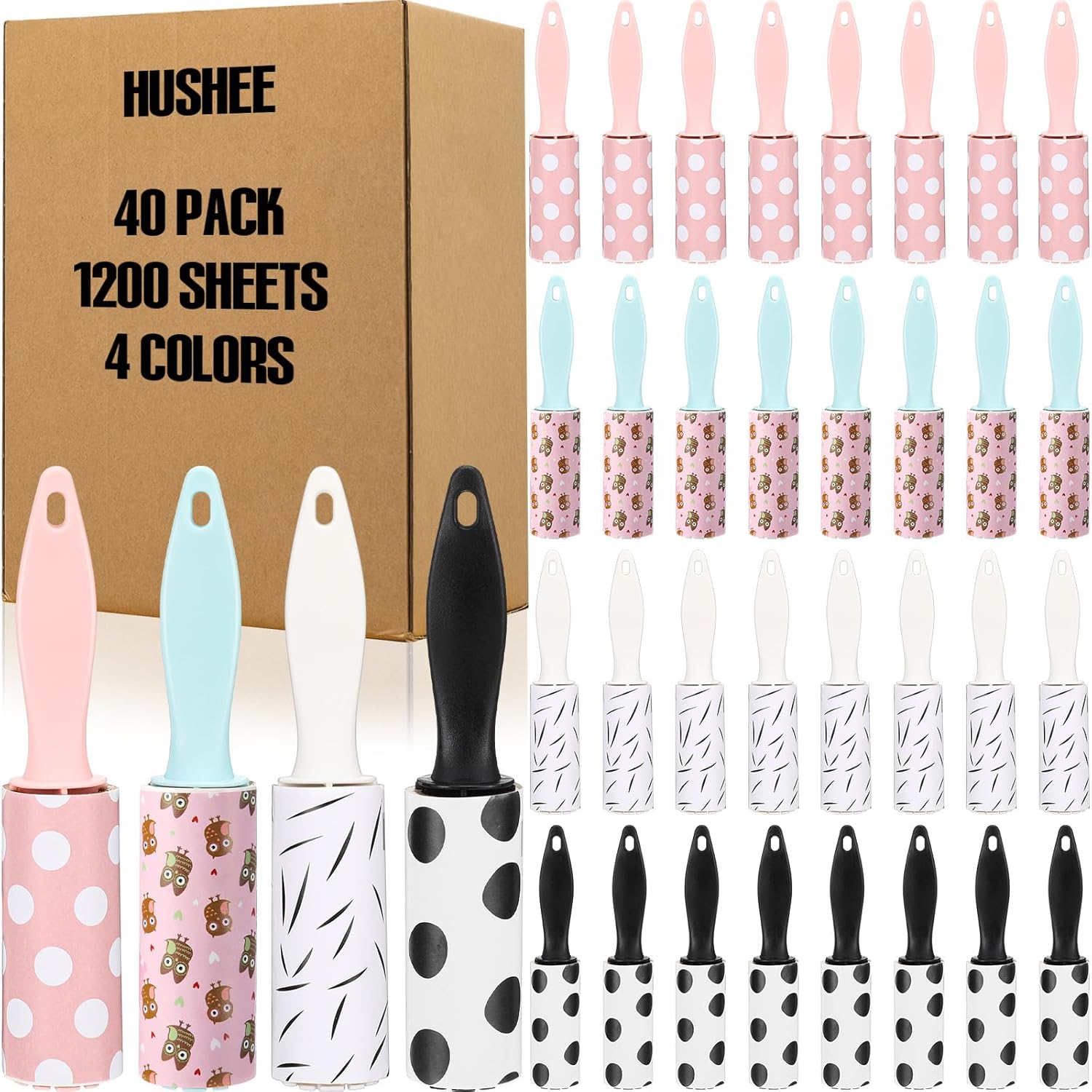 Hushee 40 Pcs Bulk Mini Lint Roller for Pet Hair and Clothes Lint Roller Travel Size Removers Sticky Removing Tool for Travel, Gift Bags, Furniture, Car Seat