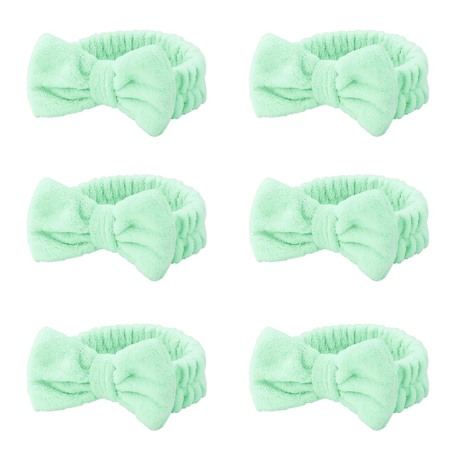 Casoty 6 Pcs Green Spa Headbands, Skin Care Headband, Soft Coral Fleece headbands for makeup, Bow Hair Band for Face Washing Shower Skin Care Yoga