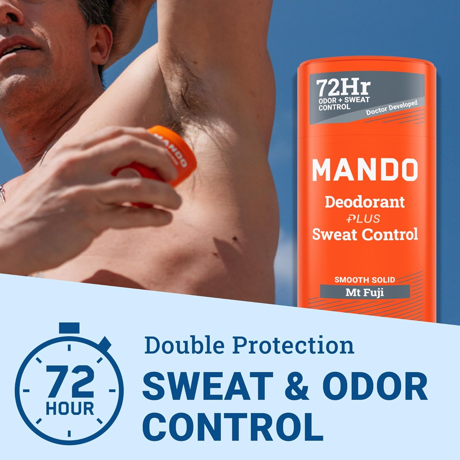 Mando Antiperspirant Deodorant Sweat and Odor Control for Men – Extra Strength Smooth Solid Stick – 72 Hour Performance – Baking Soda Free, Skin Safe – 2.6 oz – Mt Fuji – Pack of 2