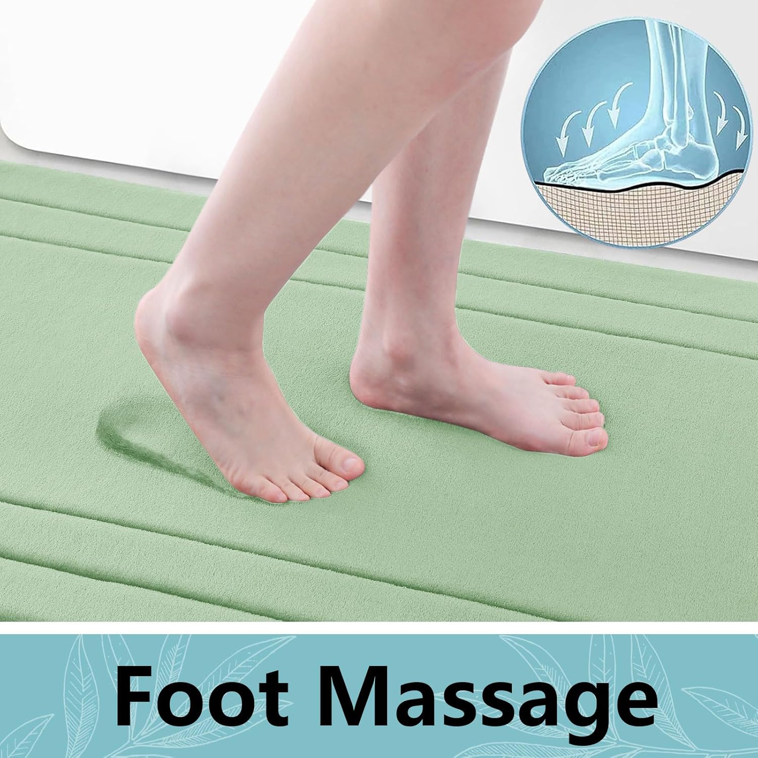 Arotive Memory Foam Bathroom Rug Mat 47x17, Ultra Soft and Absorbent Bath Mat, Machine Wash Dry, Comfortable Bath Rug Carpet for Bathroom Floor, Tub and Shower, Sage Green