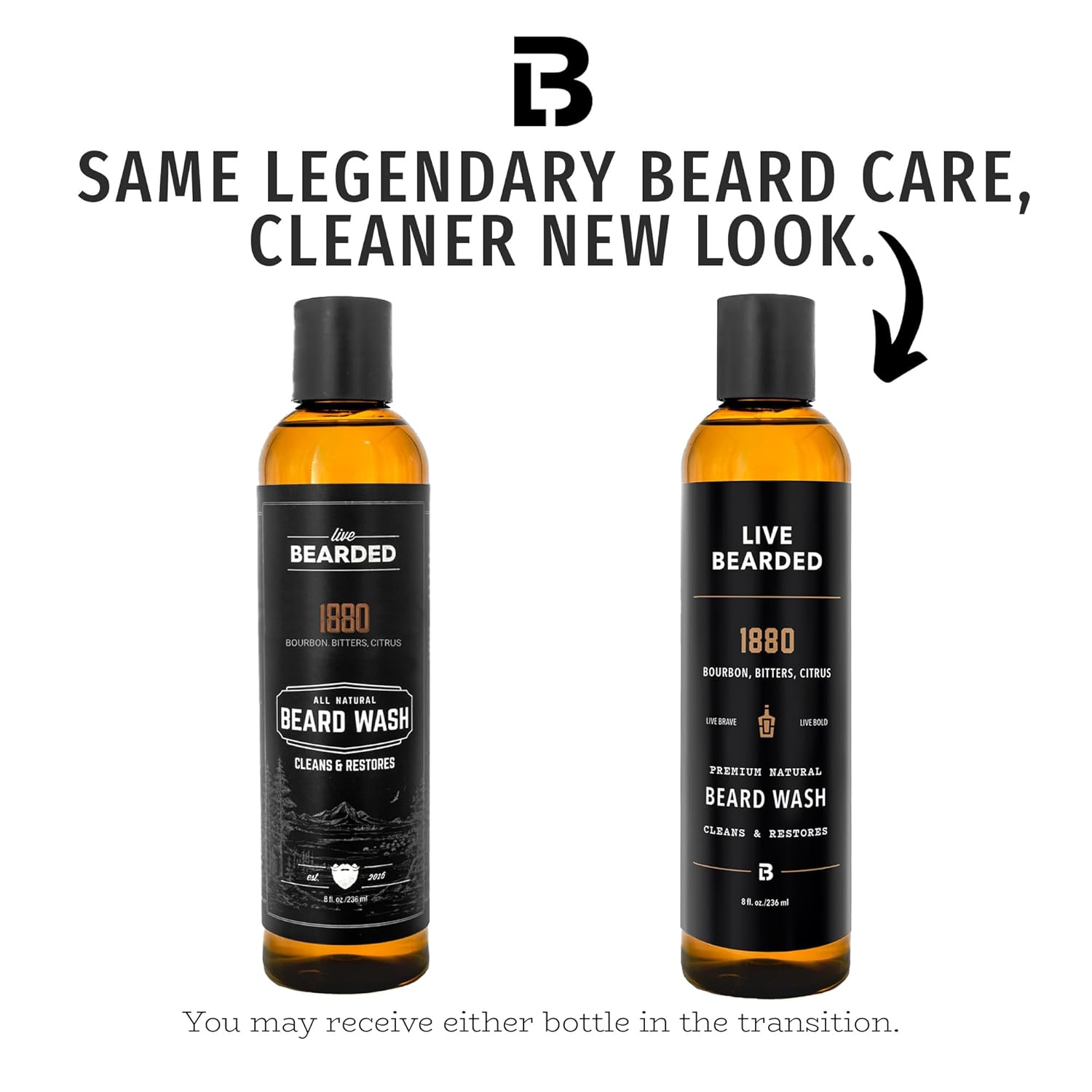 Live Bearded Beard Wash, 8 fl oz - Water-Based Face Cleanser with All-Natural Ingredients for a Gentle, Deep Clean - Made in the USA | 1880 Scent - Bourbon, Bitters, Citrus