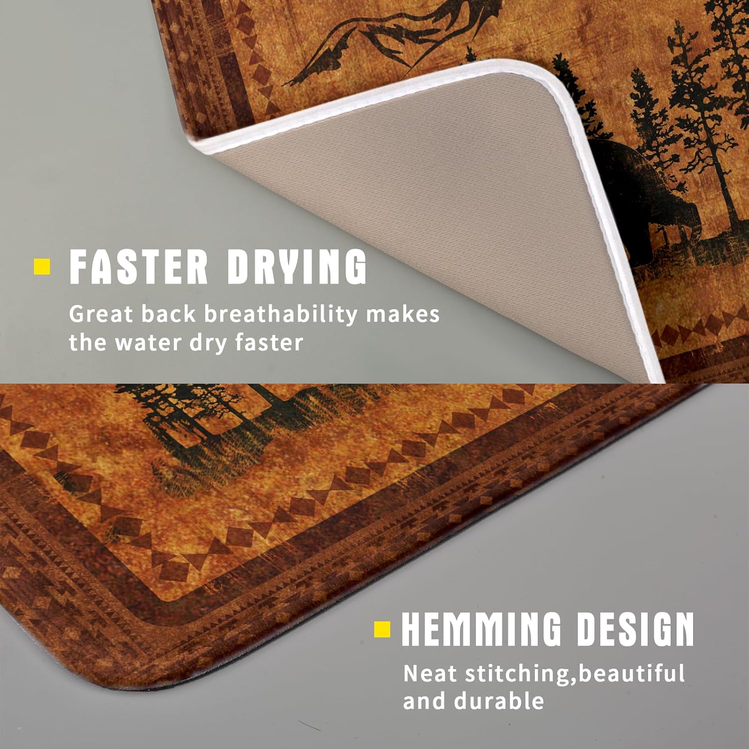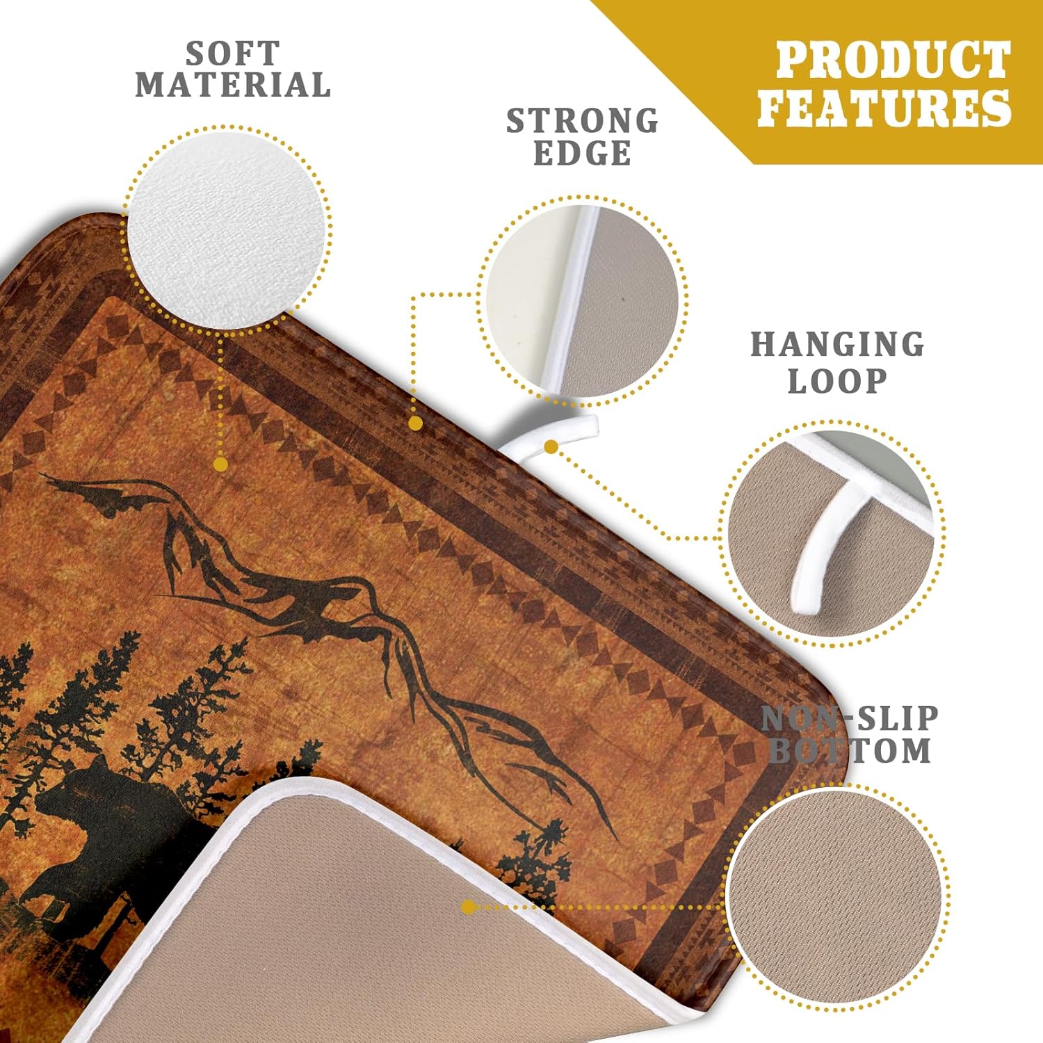 Forest Bear Dish Drying Mat 16x18 Inch Rustic Cabin Washable Microfiber Absorbent Dishes Drainer Rack Pad for Kitchen Counter Home Decor