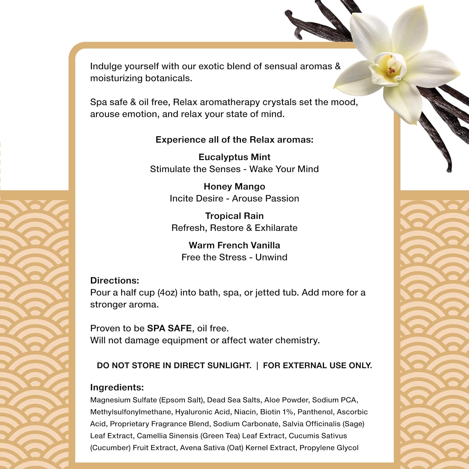 - ELEGANT VANILLA AROMA FOR SPA MOMENTS: A warm, velvety French vanilla scent sets the tone for a luxurious soak—subtle, comforting, and perfect for relaxing into the moment with aromatherapy bath salts that feel indulgent but never overpowering.