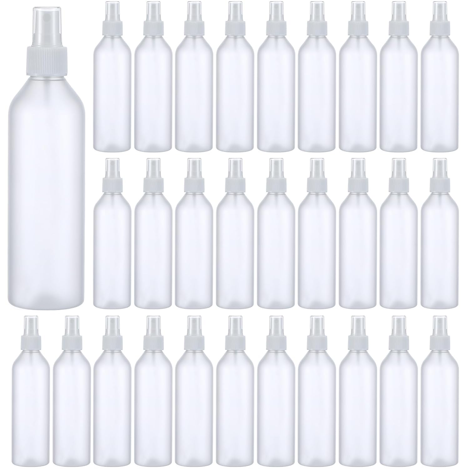 Eccliy 32 Pcs 8 oz Spray Bottles Fine Mist Cleaning Bottles Clear Empty Plastic Travel Sprayer Refillable Sprayer with Cap for Cleaning Solutions Oils Travel Perfumes(Clear,White,Frosted)