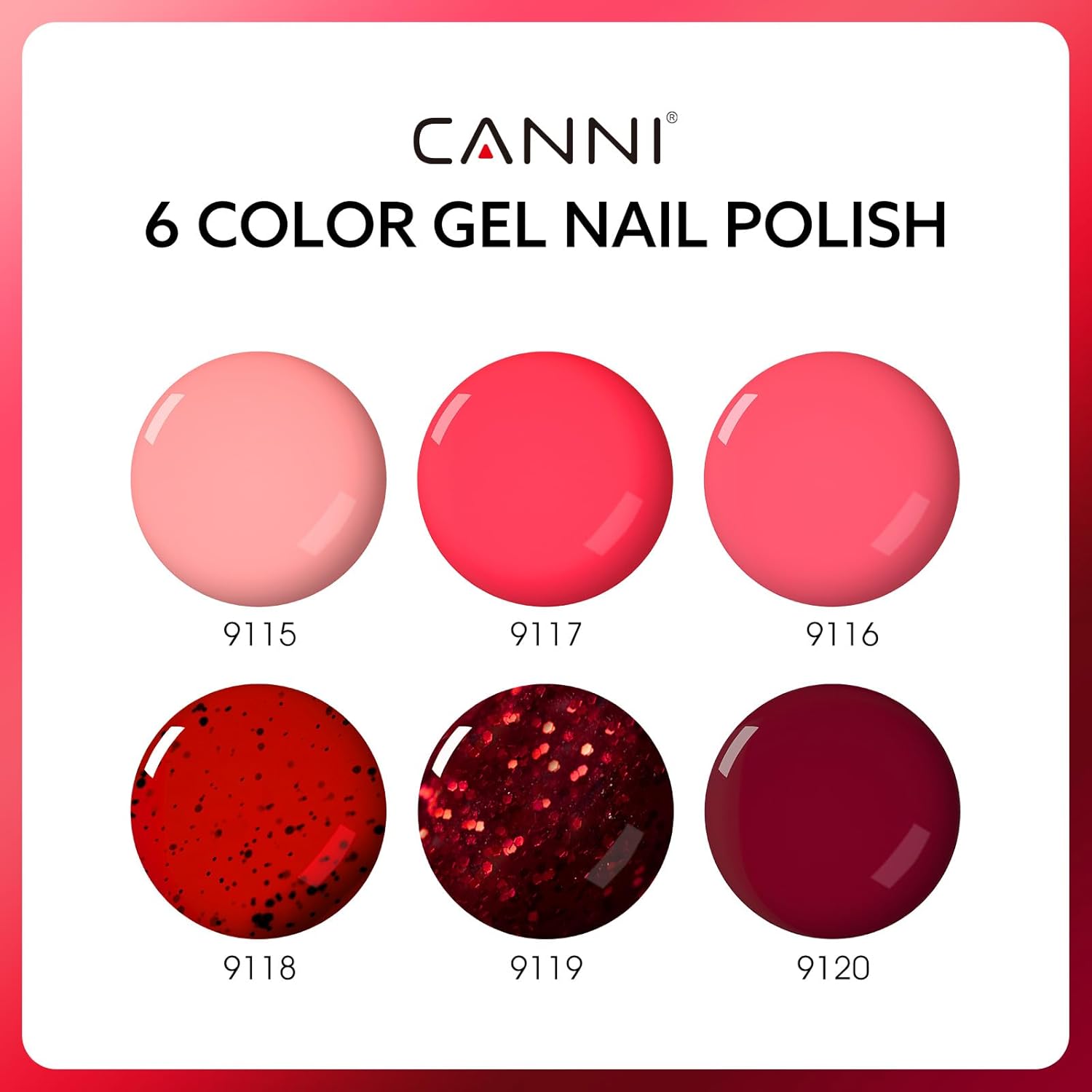 CANNI 6 Colors 9 ML Hema-Free Glitter Red Gel Nail Polish Set, Dark Cherry Red Gel Polish Kit, Soak Off LED Nail Gel Manicure Kit DIY at Home Salon Gifts