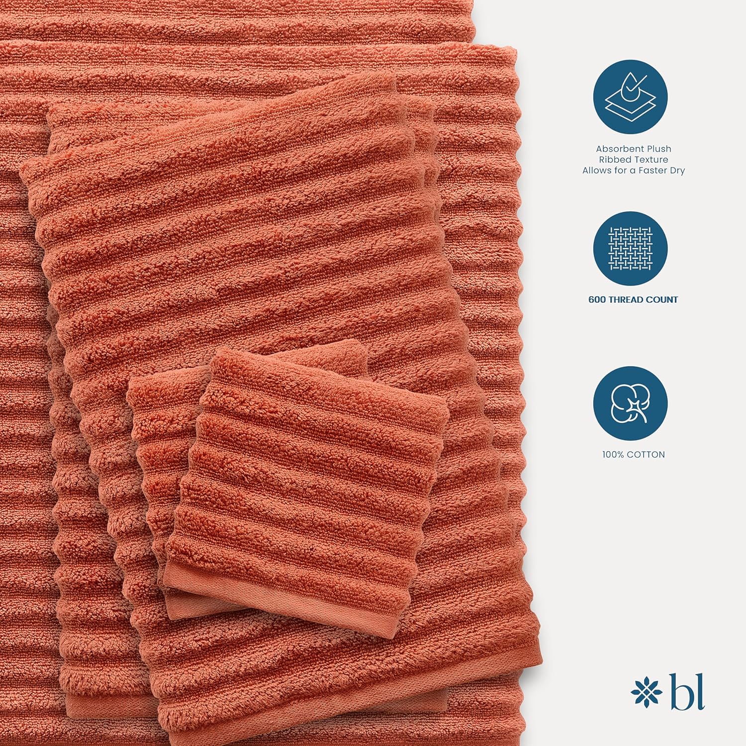 Blue Loom Ribbed Bath Towels Set, 100% Cotton 600 GSM, Soft Absorbent Durable Quick Drying 2 Bath Towels for Bathroom - Mason Set of 2 Terracotta Red (58" x 30" Inch)