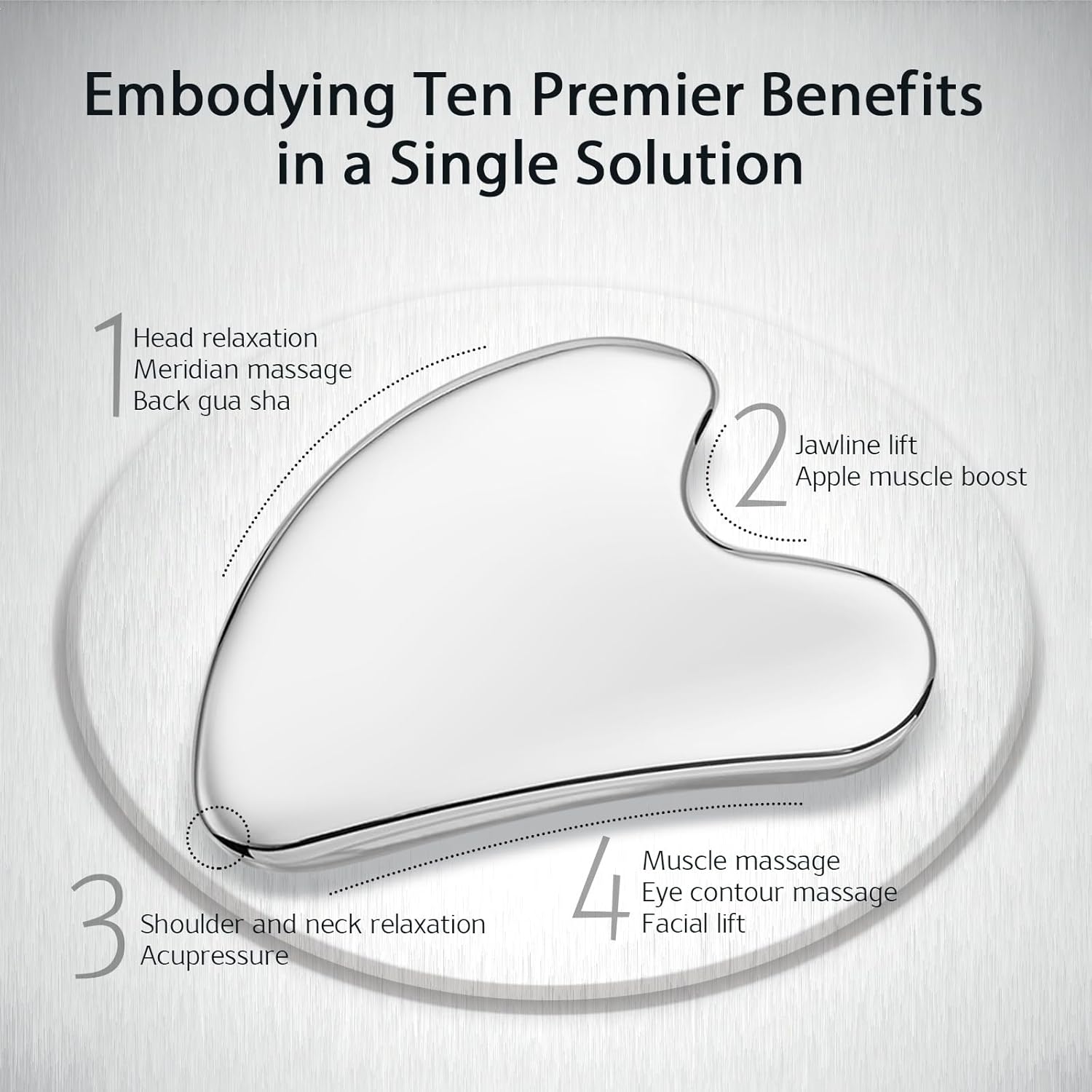- Premium Stainless Steel, Safe & Durable:Made of high-quality PREMIUM stainless steel, this gua sha tool is sturdy, rust-resistant, and corrosion-proof. Unlike traditional jade or horn scrapers, it is more hygienic, easy to clean, and long-lasting, making it suitable for all skin types.