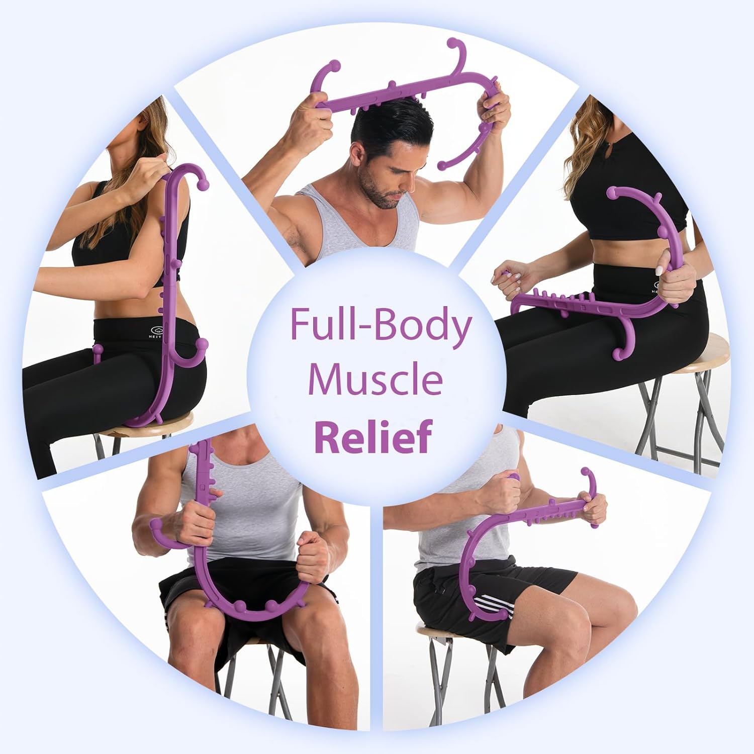 - Trigger Point Massage Tool for Pain Relief – Our massage hook puts a full body massage in the palm of your hands. Its unique two-sided cane design allows you to deep tissue massage all muscle groups in your body from head to toe, hitting pain-trigger points and relaxing tight, spasmodic, and knotted muscles. Controls massage pressure better than massage balls, reaches hard-to-reach areas massage guns can’t, and hits trigger points unlike yoga rollers