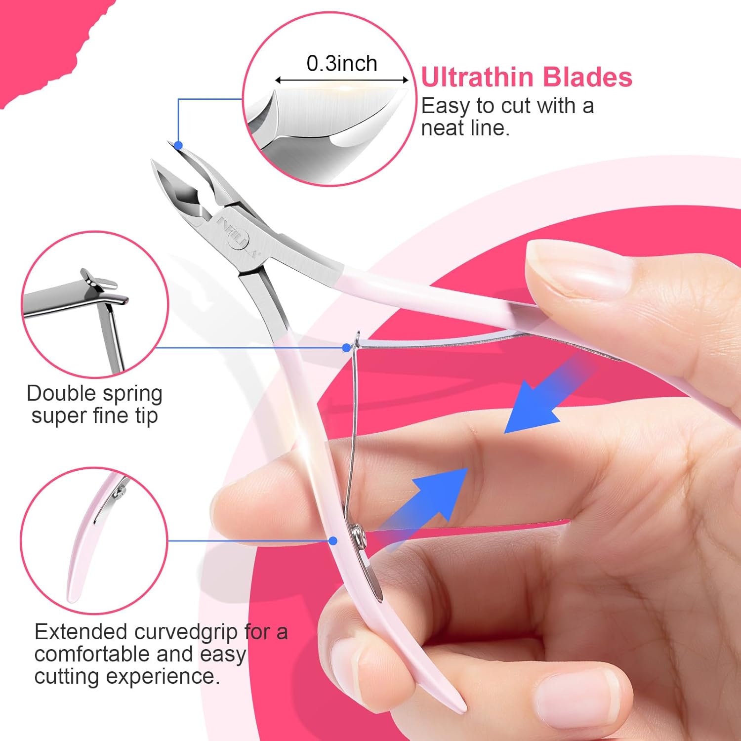 - Cuticle Trimmer: Our cuticle clippers are completely made of high-quality stainless steel as the material, is very durable, can be used for a long time, and will not rust, whether it is a professional nail salon or at home to use it is very suitable