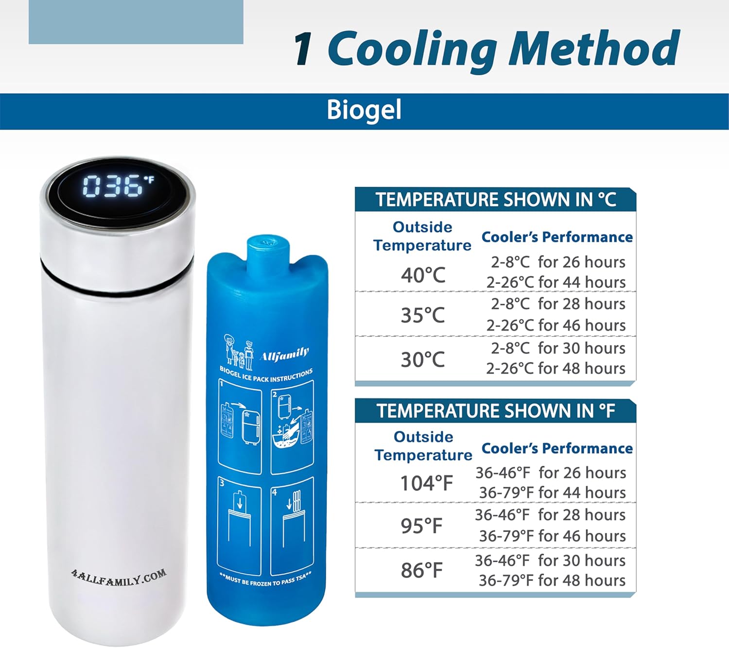 - ADVANCED BIOGEL TECHNOLOGY: Eliminate melted water packs & frozen meds, our Biogel freezes at 36°F to keep a stable range, protecting medicine from damage; this medicine cooler for travel TSA approved design is reusable and practical