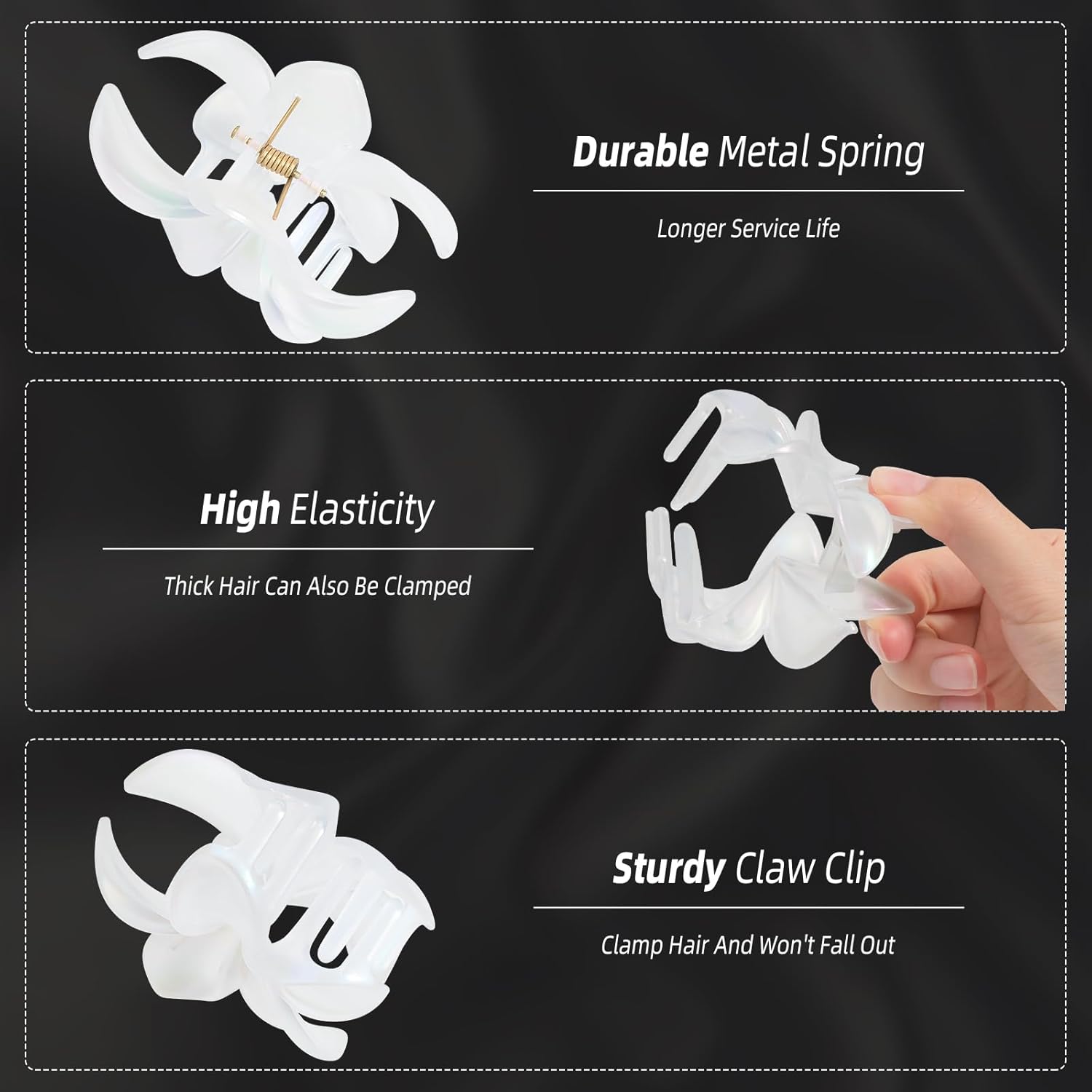 - Each flower claw clips is about 3.4x3.3 inch, the claw clip is crafted from durable plastic and metal spring, featuring an interlocking teeth design to ensure a secure hold without easily slipping off