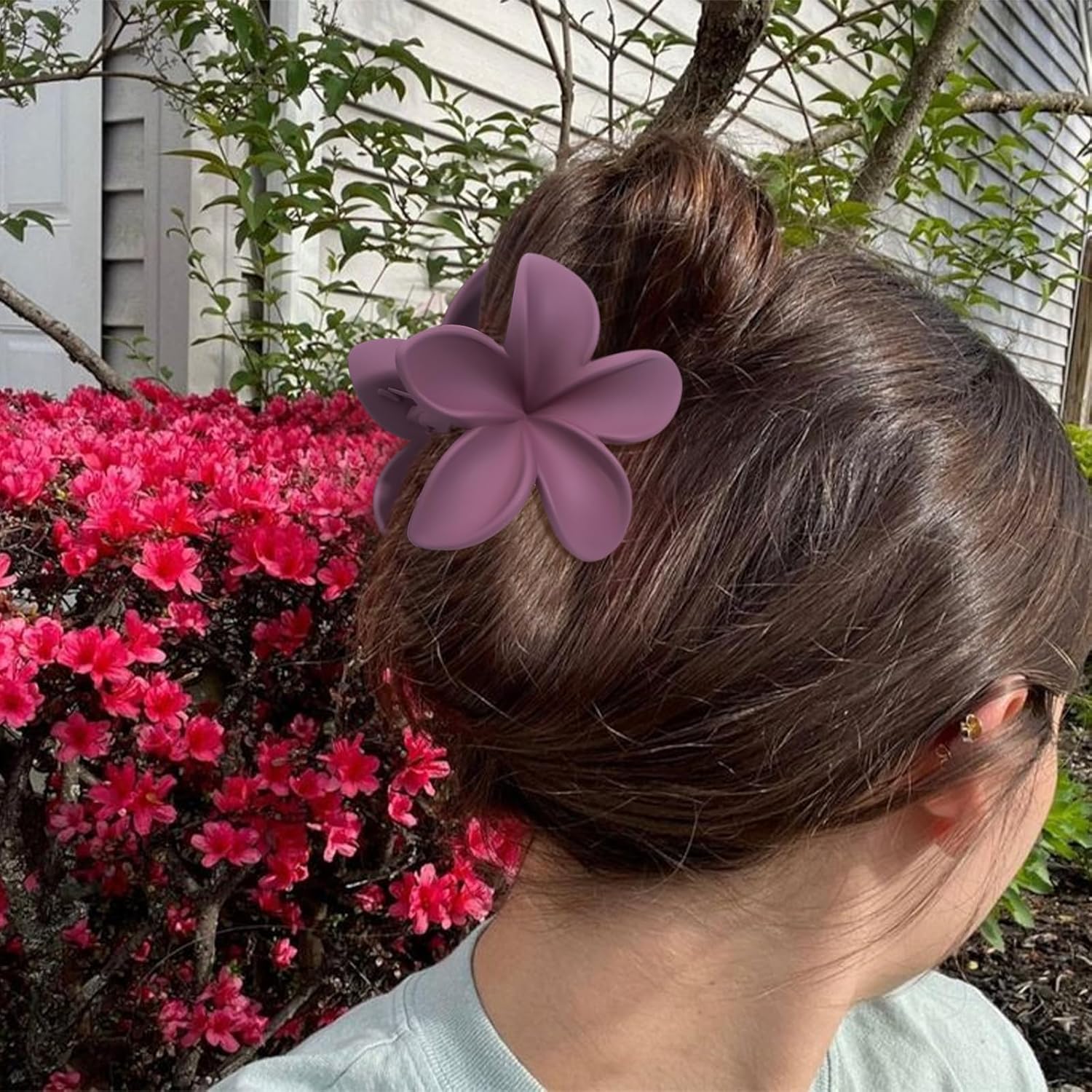 Hawaiian Flower Hair Claw Clip for Women Girls 6 PCS Large Plumeria Flower Hair Clips for Thick Thin Hair Hawaii Hair Accessories - Matte 1