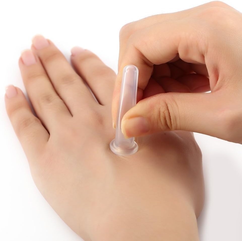 - Portable Massage Cupping Set: Includes 4 transparent silicone cups (2 small, 2 large) for facial massage and body cupping therapy.