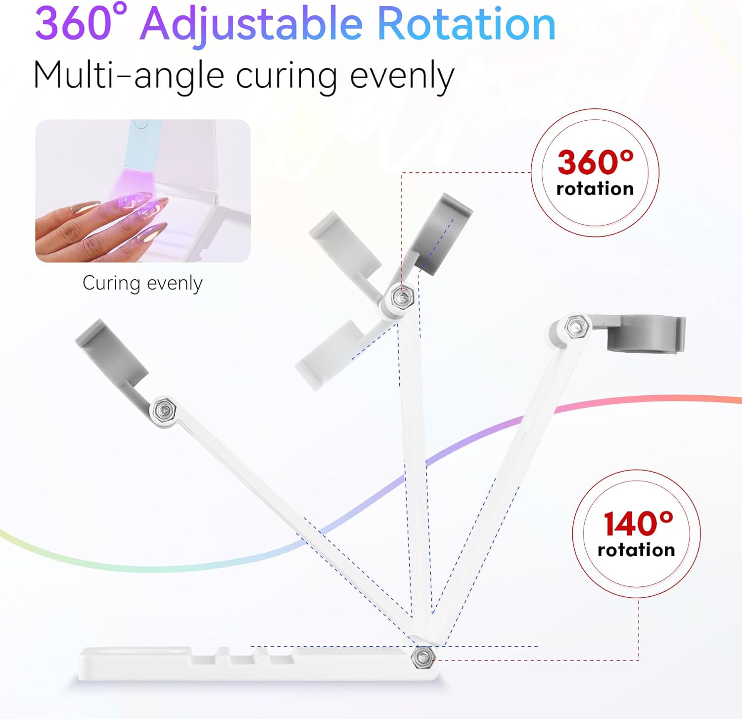 - 360° Adjustable Rotation: Makartt handheld nail lamp stand allows for seamless 360° movement, ensuring complete and even curing of your nails with no missed spots. Its adjustable components make it easy to adjust the light angle, providing ultimate flexibility and precise coverage for flawless results.