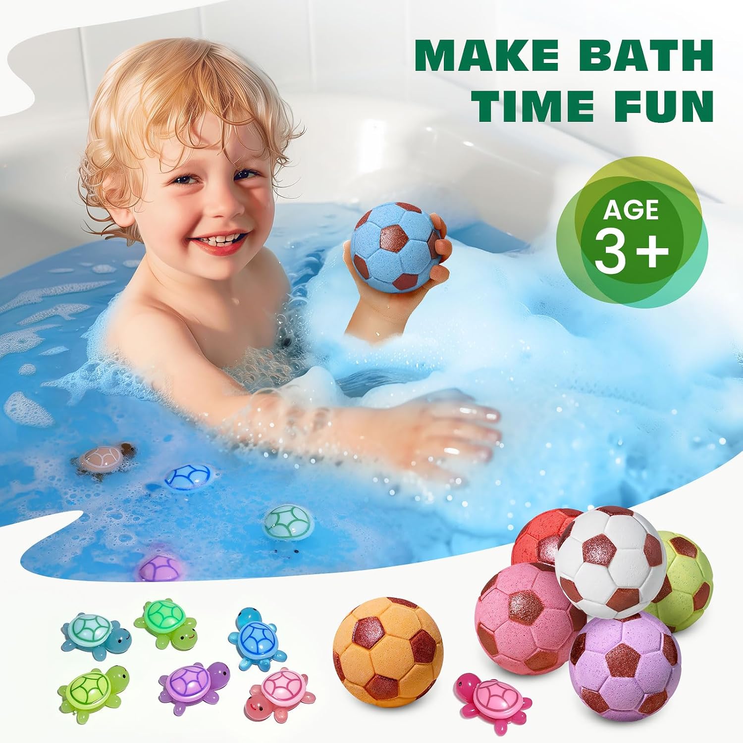 Bath Bombs with Surprise Toys Inside, Soccer Gifts for Kids Boys Girls, 9 Kids Bath Bombs Gift Set, Handmade Nature Bubble Bath Fizzes Bomb, Birthday Gifts for Kid