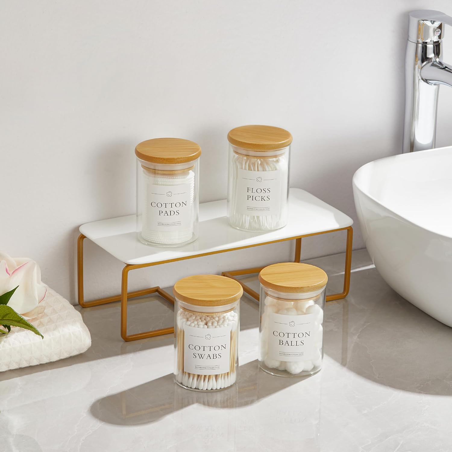 - Bathroom Décor & Vanity Décor: The q tip holder for bathroom is made out of nice glass, not plastic, combined with the natural bamboo lids, add a touch of warmth and elegant to your space; a wonderful addition to bathroom décor and vanity decor.