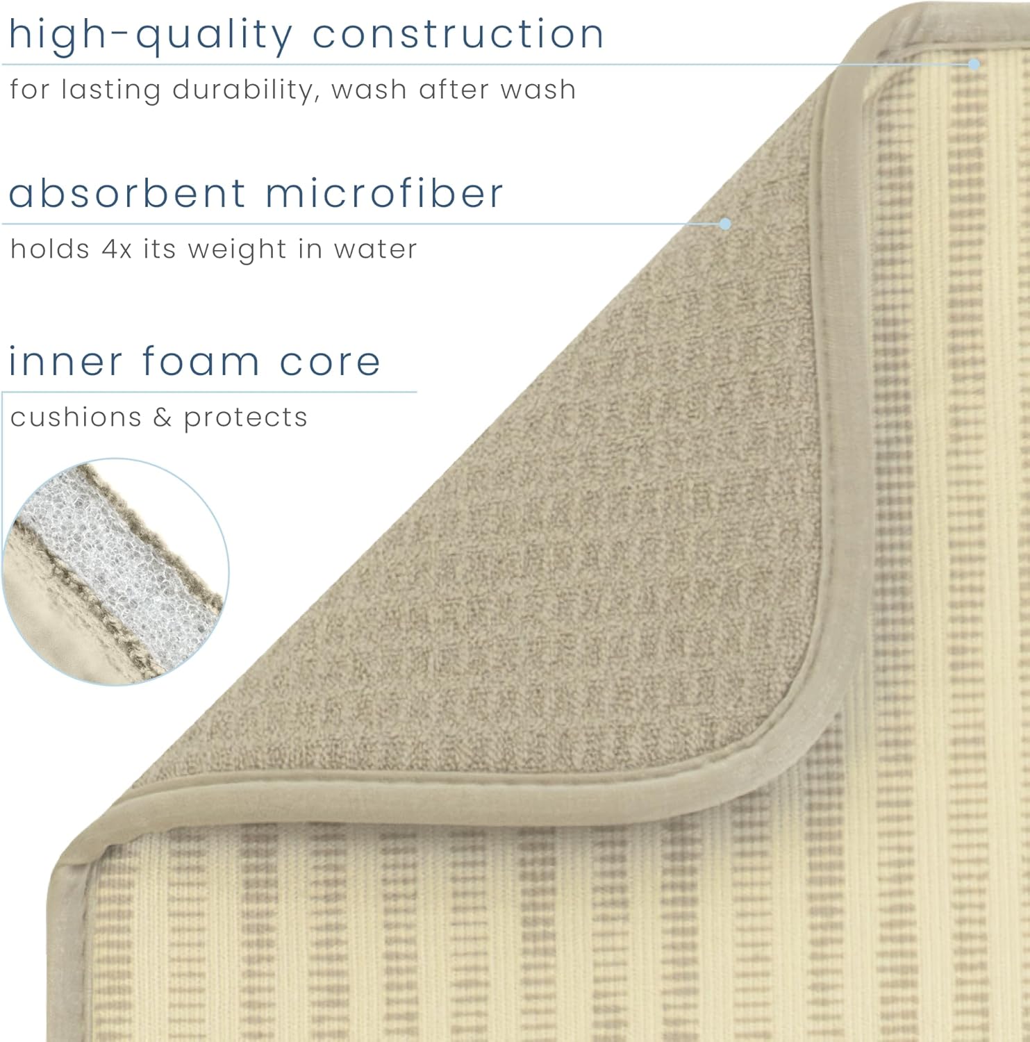 S&T INC. Dish Drying Mat, 16” x 18”, Absorbent Microfiber Kitchen Counter Mat, Dish Drying Pad for Dishes, Utensils, Pots and Pans, Large, Cream Distressed Lines