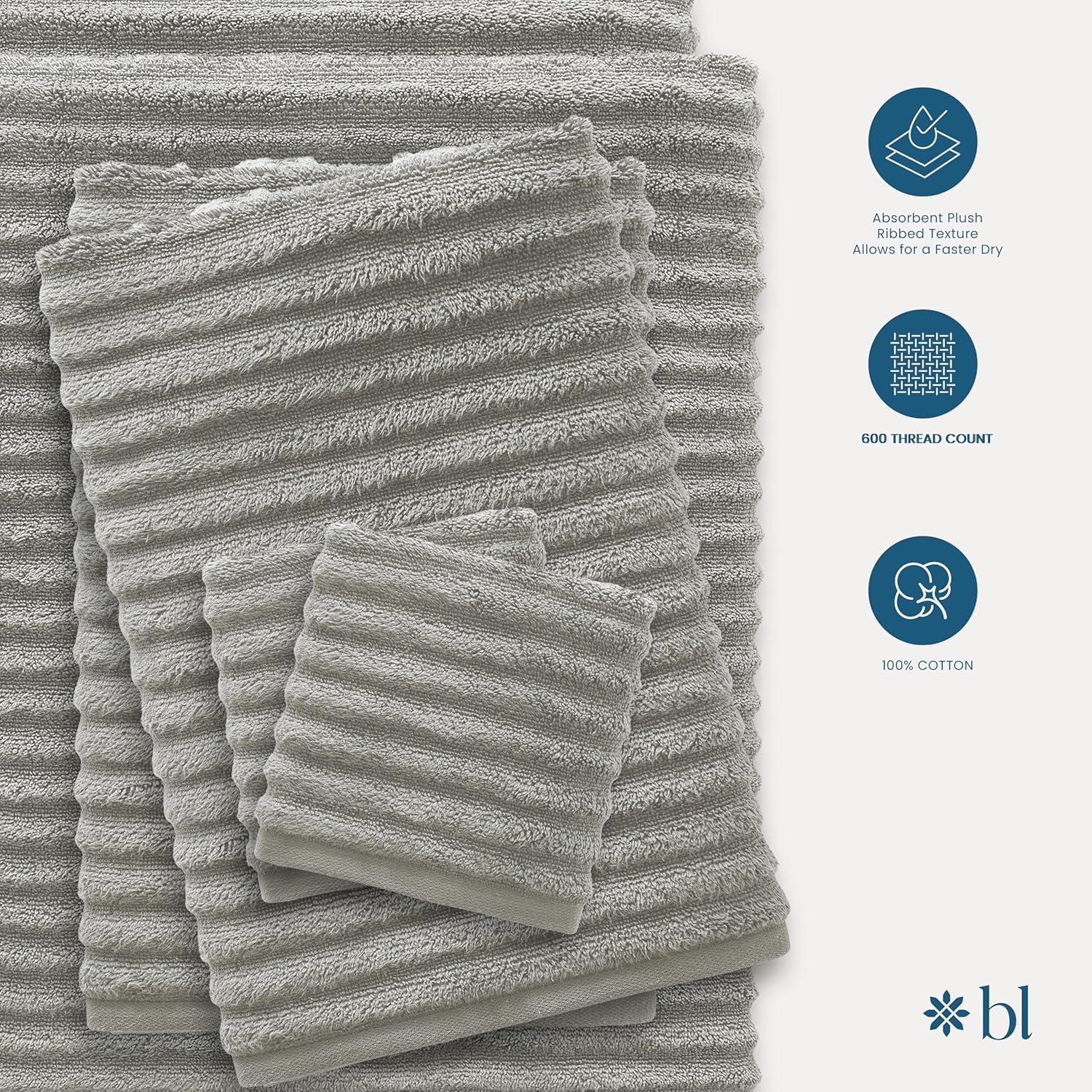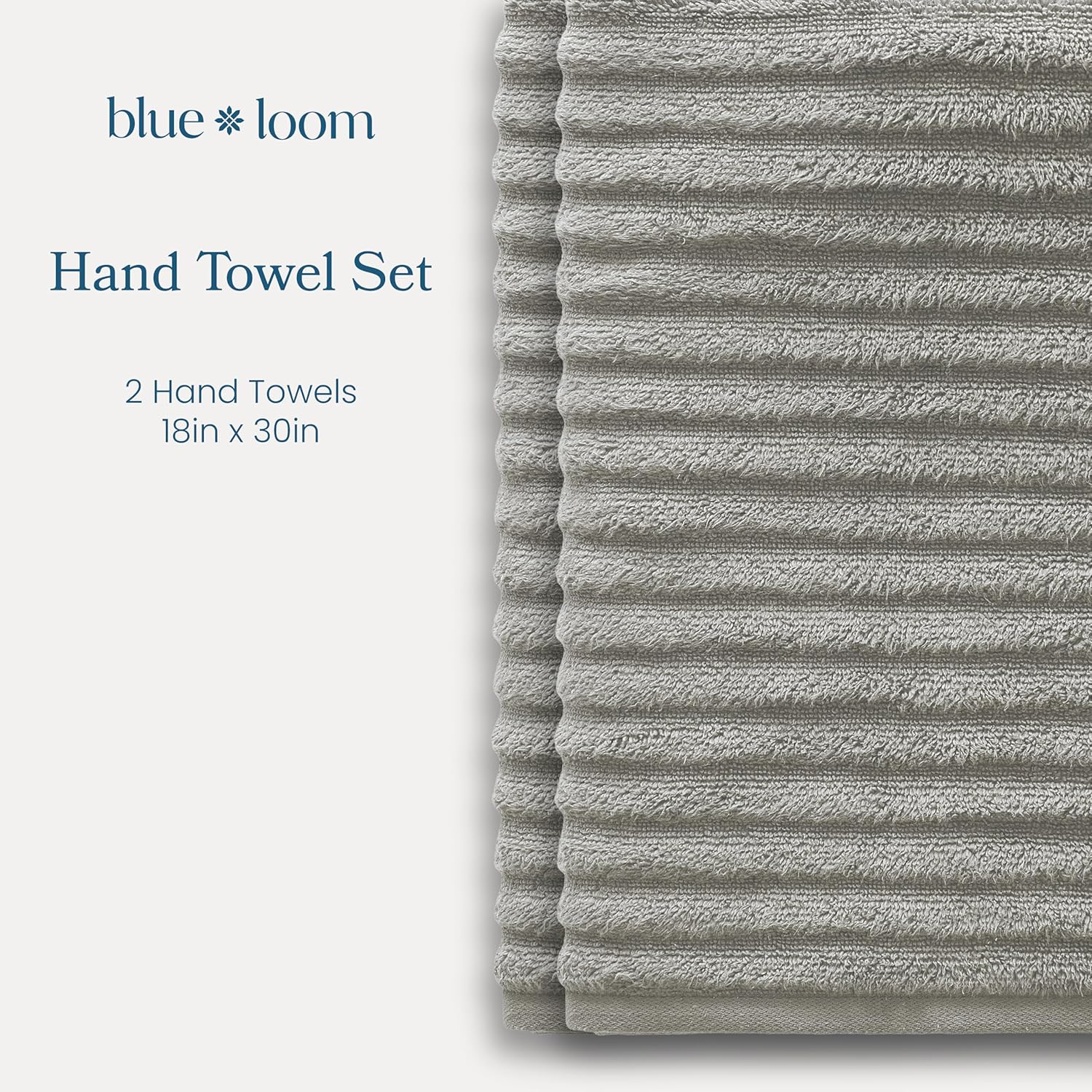 Blue Loom Ribbed Hand 2 Towels Set, 100% Cotton 600GSM, Soft Absorbent Durable Quick Drying for Bathroom - Mason 2 Piece 18" x 30" - Stone