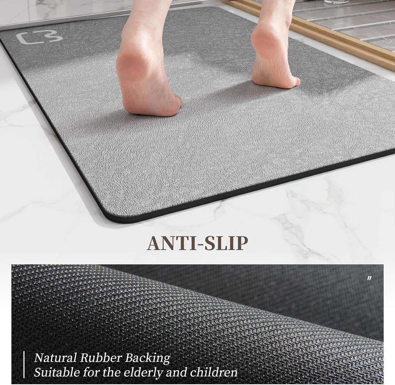 - 【Non-Slip Backing & Low Profile No Risk of Tripping】The 100% high-quality anti-slip rubber bottom of our grey bath mats for bathroom provides excellent grip on wet and smooth floors. This minimizes the risk of slipping, making it safe for children and the elderly to use. You can step out of the shower or bathtub with confidence.