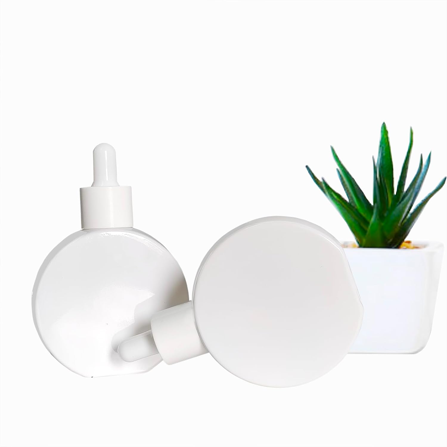 6Pcs 2 oz White Glass Dropper Bottles for Essential Oils,60ml flat round perfume bottle with Eye Droppers,for Essential Oils,Perfumes, Serums - Leakproof for Travel (White)