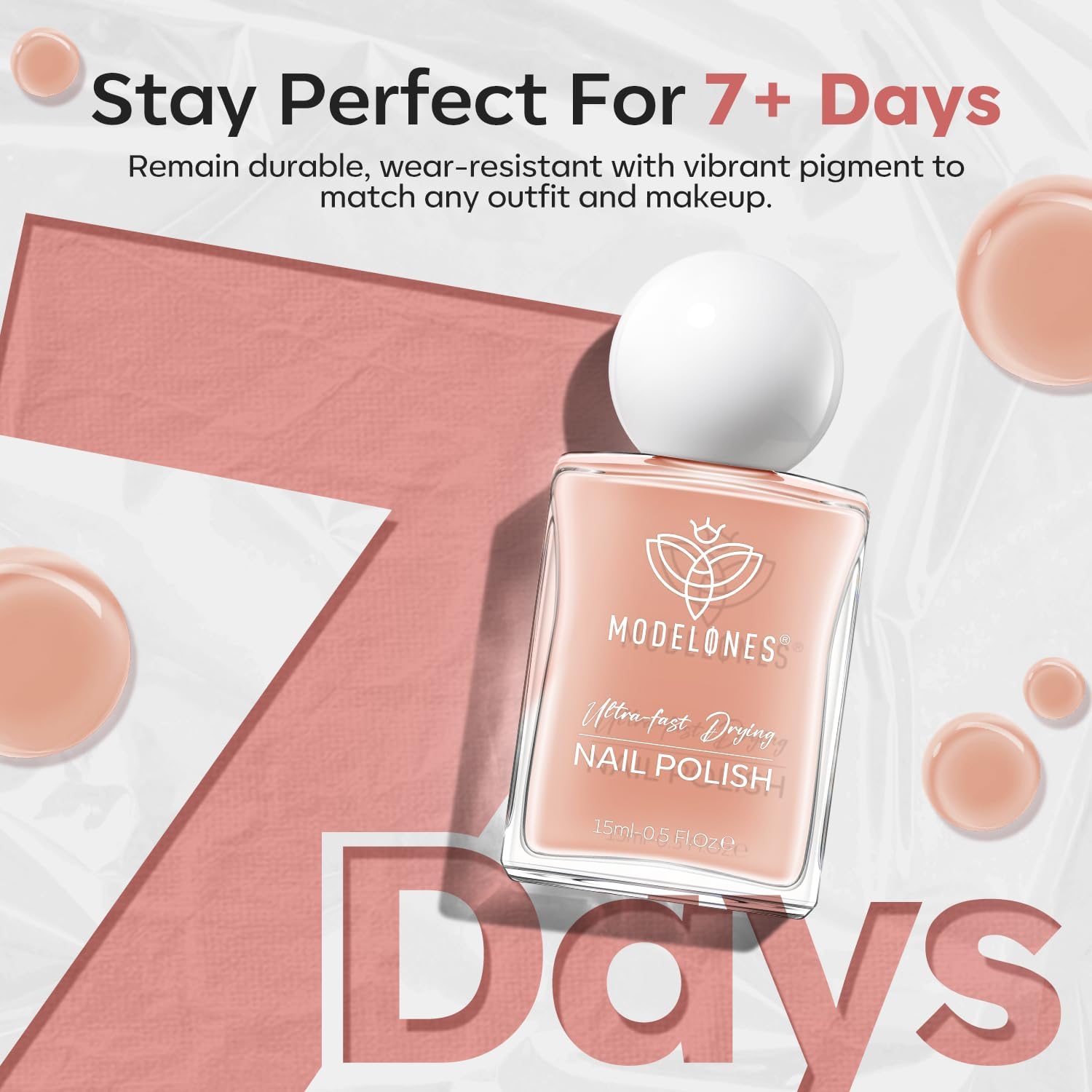 - No U V Needed & Quick Dry: With modelones innovative quick dry formula, say goodbye to long drying times and hello to flawless nails in 90 seconds. This nail lacquer is anti-chip and anti-peel, offering a "no streaks, no hassle" experience and bringing you the long-lasting shine of more than 8 days