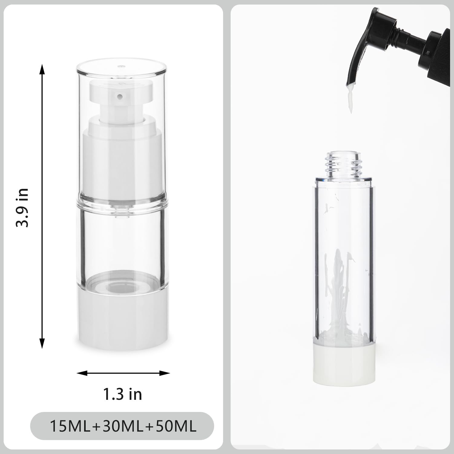 Clear Airless Pump Bottles, Lotion Dispenser Travel with Pump, Vacuum Plastic Travel Size Lotion Bottle for Foundation, Creams, Cosmetic(3 Pack)